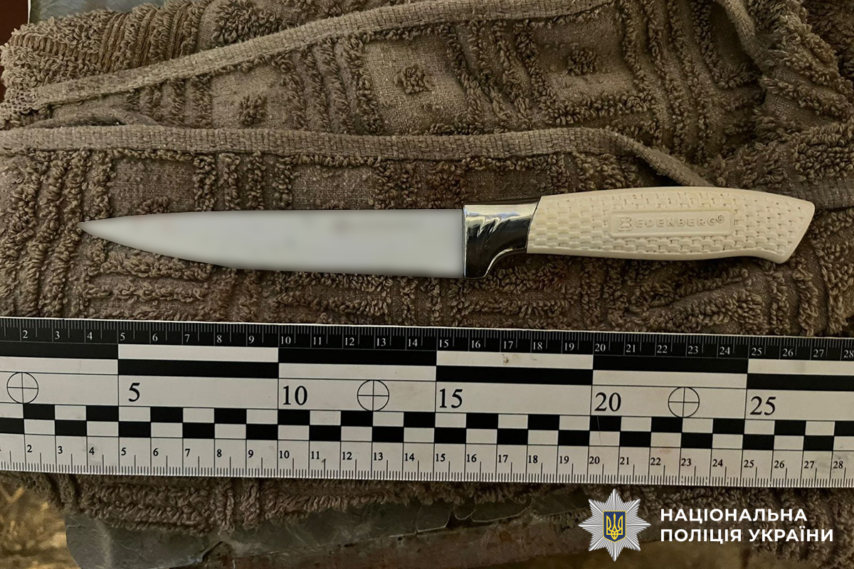 Прибувши на місце злочину правоохоронці затримали зловмсиника, а речовий доказ – ніж, вилучили. Потерпілий з ножовим пораненням знаходиться у лікарні.