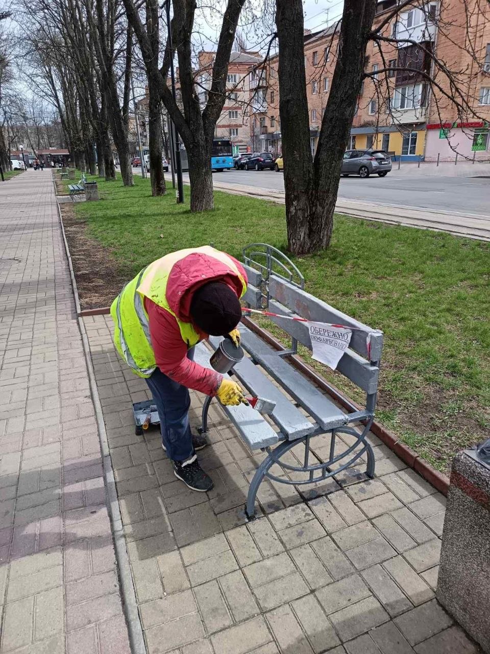 У Вінниці тривають роботи з весняного благоустрою. Поряд із міськими толоками, миттям зупинок, очищенням автошляхів та пішохідних зон, у громаді оновлюють зелені зони та фарбують елементи благоустрою, зокрема лавки та перильні огородження.