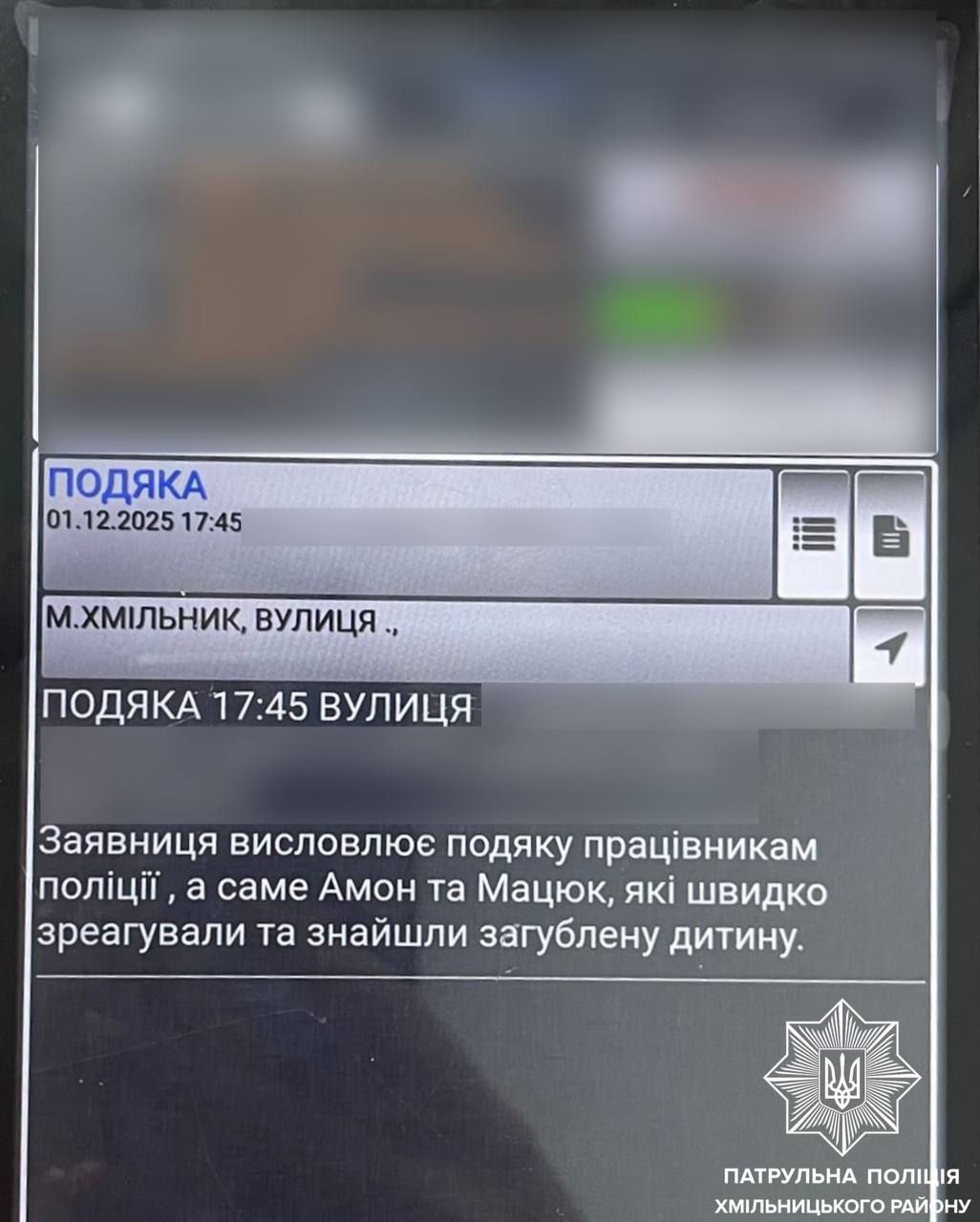 Схвильована жінка, яка загубила свою 4-річну доньку, звернулась до поліцейський увечері 1 грудня. Жінка пояснила, що вони разом вийшли на прогулянку і за мить дитини не стало поруч, йдеться в тг-каналі Патрульної поліції Хмільницького району.