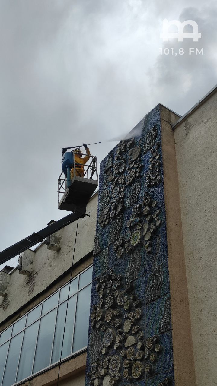 На миття однієї мозаїки пішло в середньому дві години. Очищення дбайливе – лише теплою водою під високим тиском, аби максимально зберегти історичні об'єкти.