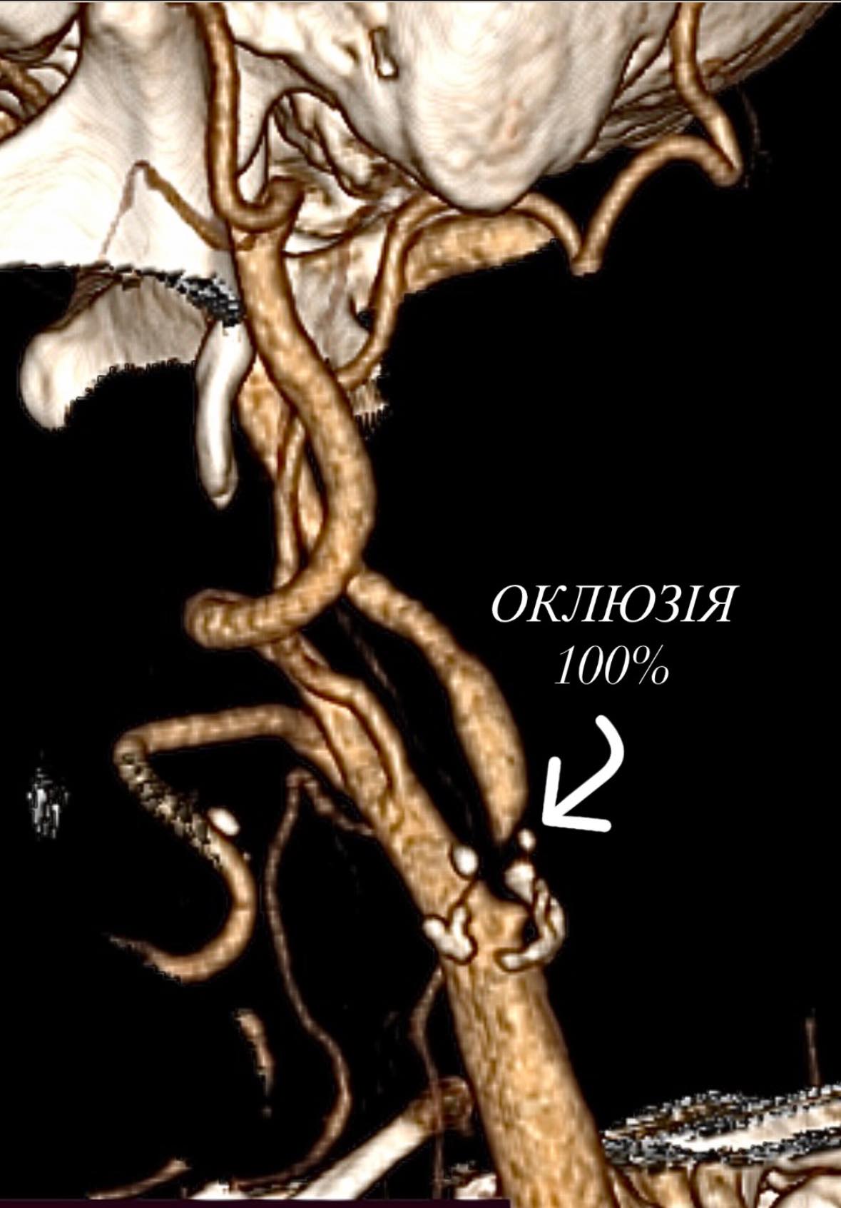 Повна оклюзія магістральної судини, що забезпечує мозкову перфузію, на тлі перенесеного інсульту та кардіохірургічного втручання — це надзвичайно високий ризик повторного інсульту або інфаркту міокарда.