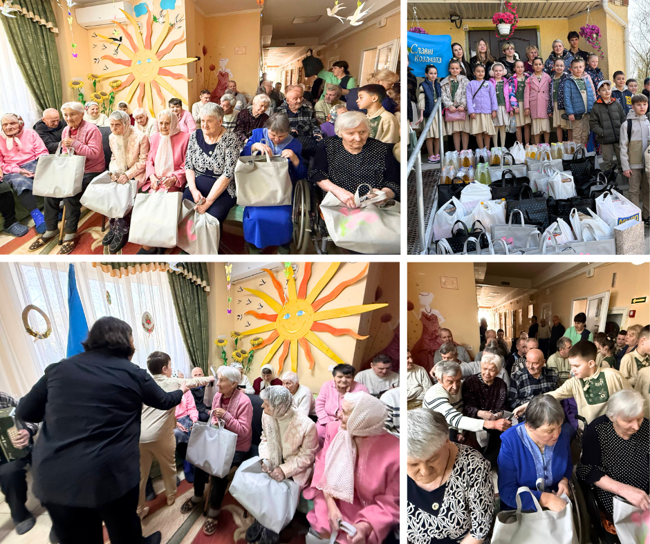 Діти привезли гостинці, які допомагали збирати самі під час ярмарків і благодійних заходів, а ще подарували мешканцям закладу невелику концертну програму.