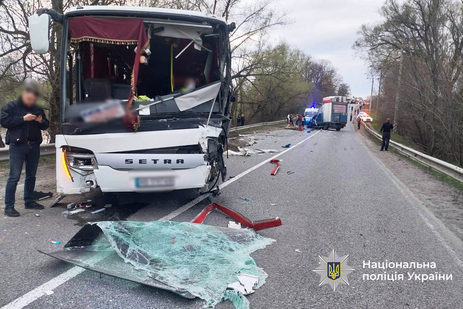 Унаслідок ДТП водій вантажівки отримав травми, несумісні з життям. Водія автобуса та ще двох пасажирів обстежили лікарі.