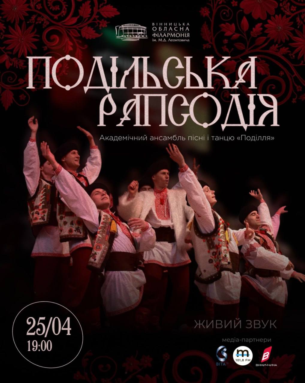 «Академічний ансамбль пісні і танцю «Поділля» презентує оновлену програму «Подільська рапсодія», до якої увійшли як хрестоматійні, так і нові твори та постановки — хорові обробки народних пісень, хореографічні композиції та віртуозні інструментальні пʼєси. Живий звук, живі емоції, живе українське мистецтво. Як завжди, на вас чекає масштабний фолькперфоманс, що проходитиме у форматі нон-стоп дійства. Незабутні враження гарантовано!» – йдеться у повідомленні на сторінці Вінницької обласної філармонії.