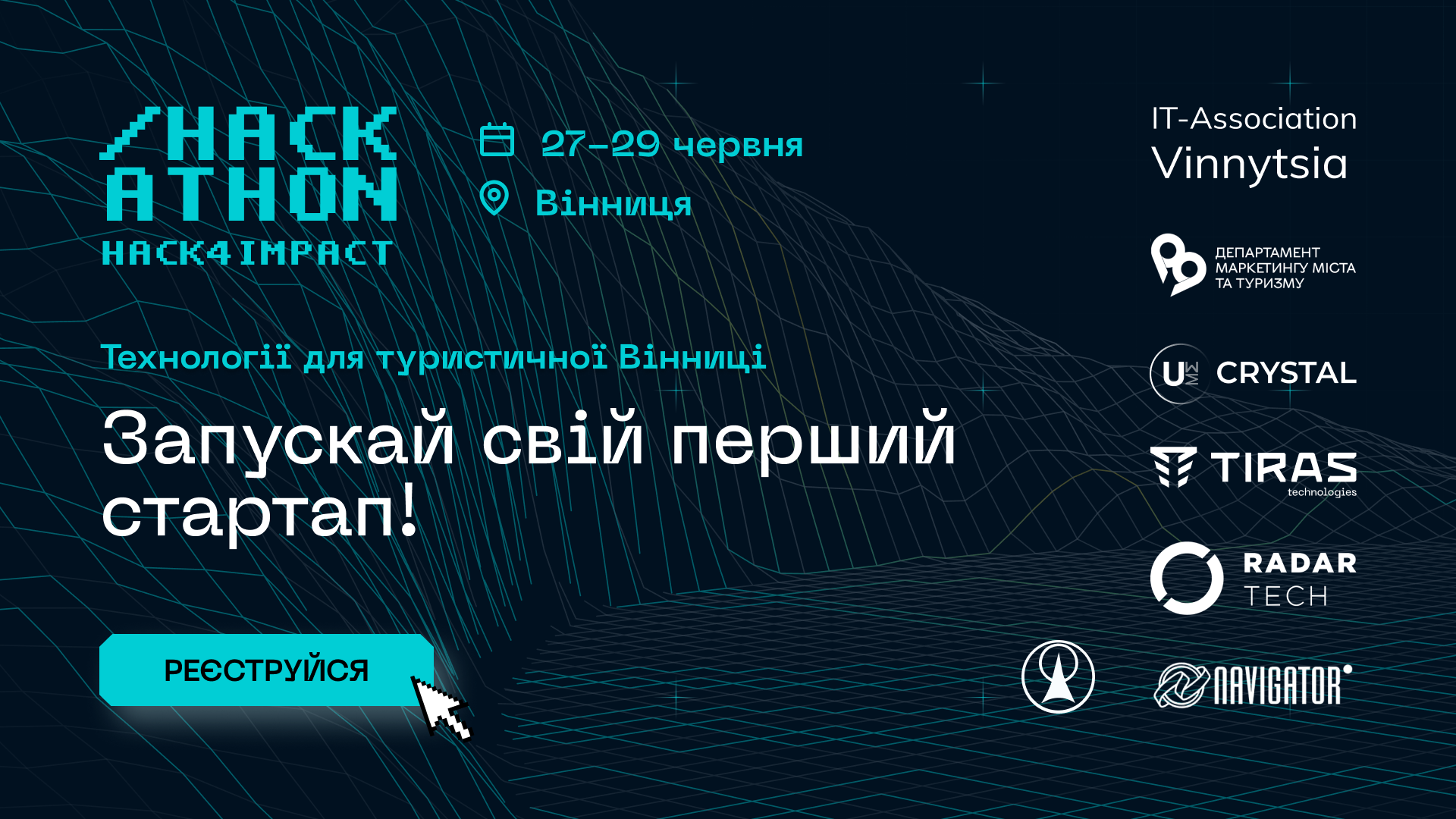 Студентський хакатон «Hack4Impact» організовують ІТ Асоціація Вінниці і Radar Tech за підтримки департаменту маркетингу міста та туризму Вінницької міської ради, Вінницького технічного фахового коледжу, UME.Place, TIRAS Technologies, компанії «НАВІГАТОР». Інформаційні партнери: DOU, «20 хвилин» та I-Vin.Info.