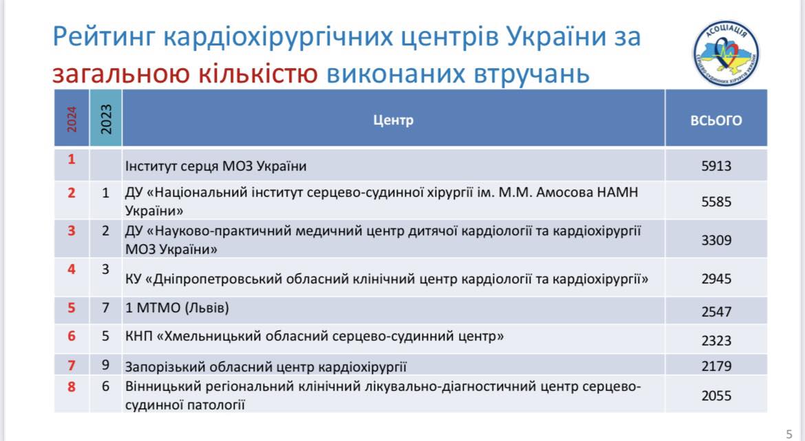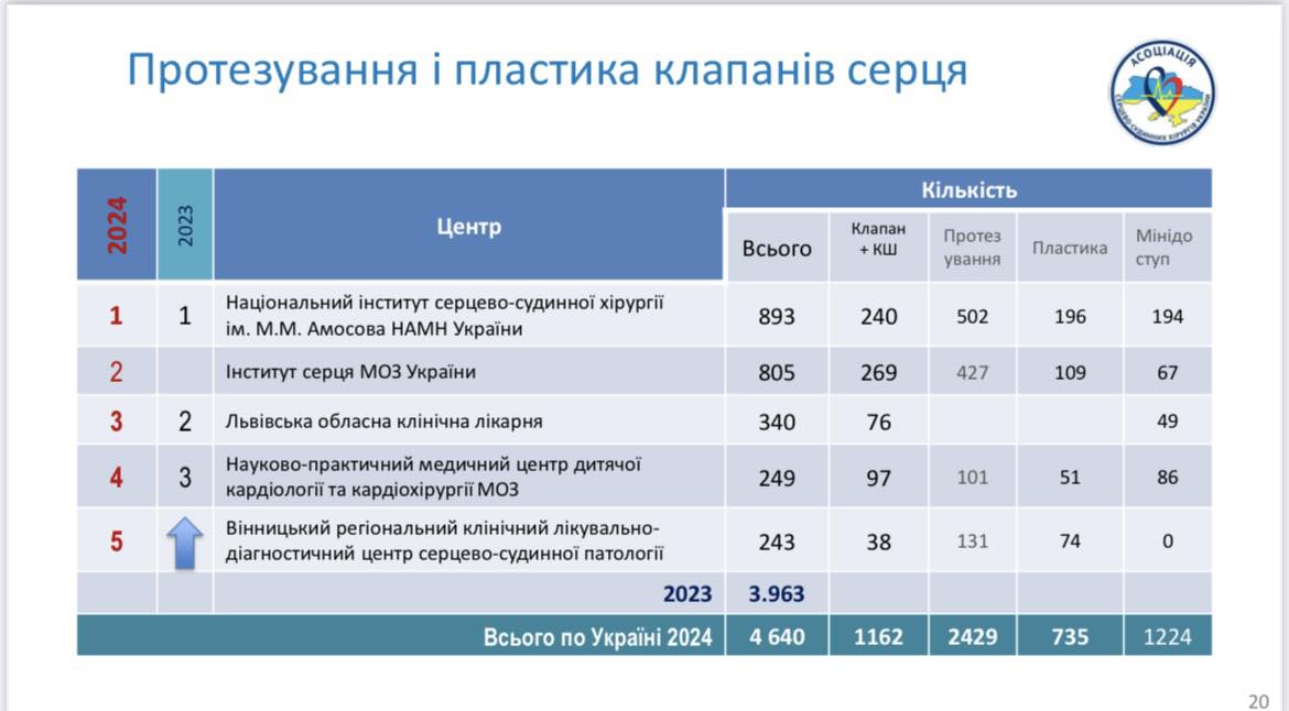 Як інформують на сайті Вінницької міської ради, за підсумками 2024 року Вінницький регіональний центр серцево-судинної патології посів: