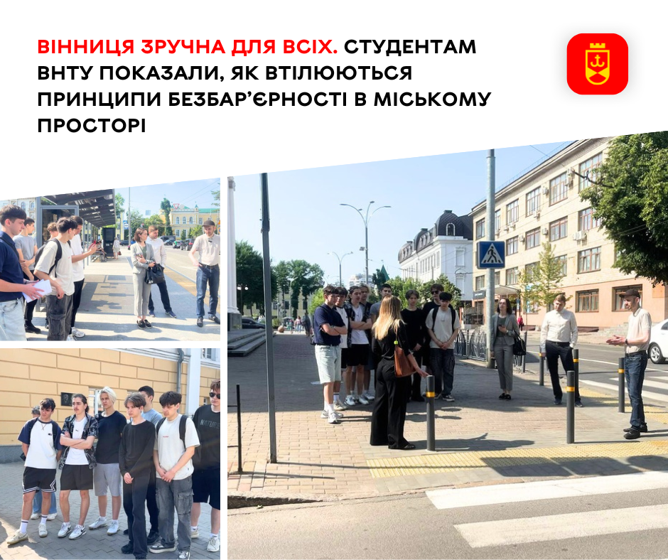 Сьогодні, 9 червня, студенти-другокурсники Вінницького національного технічного університету мали можливість ознайомитися з тим, як втілюються принципи безбар’єрності в міському просторі за ініціативи Вінницької міської ради. Під час практичного заняття у середмісті їм показали низку рішень, які стали зразковими для інших міст України.