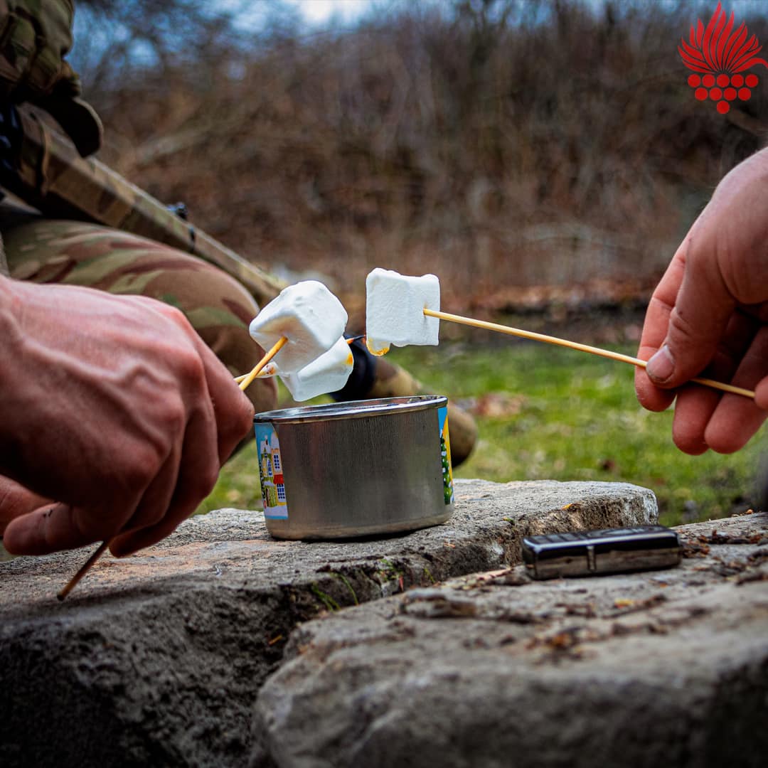 Сергій часто ділився з побратимами теплими спогадами про те, як вдома з родиною вони смажили зефір на багатті. Тож вони вирішили відтворити улюблену традицію іменинника.