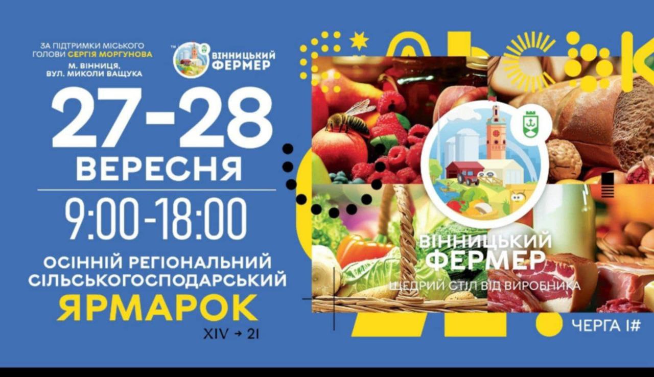 Як повідомляють на сайті Вінницької міської ради, цими вихідними, 27–28 вересня, у Вінниці відбудеться черговий Регіональний сільськогосподарський ярмарок. Захід стане початком серії осінніх ярмарків, які триватимуть щовихідних з 27 вересня до 19 жовтня у межах Вінницької міської територіальної громади.
