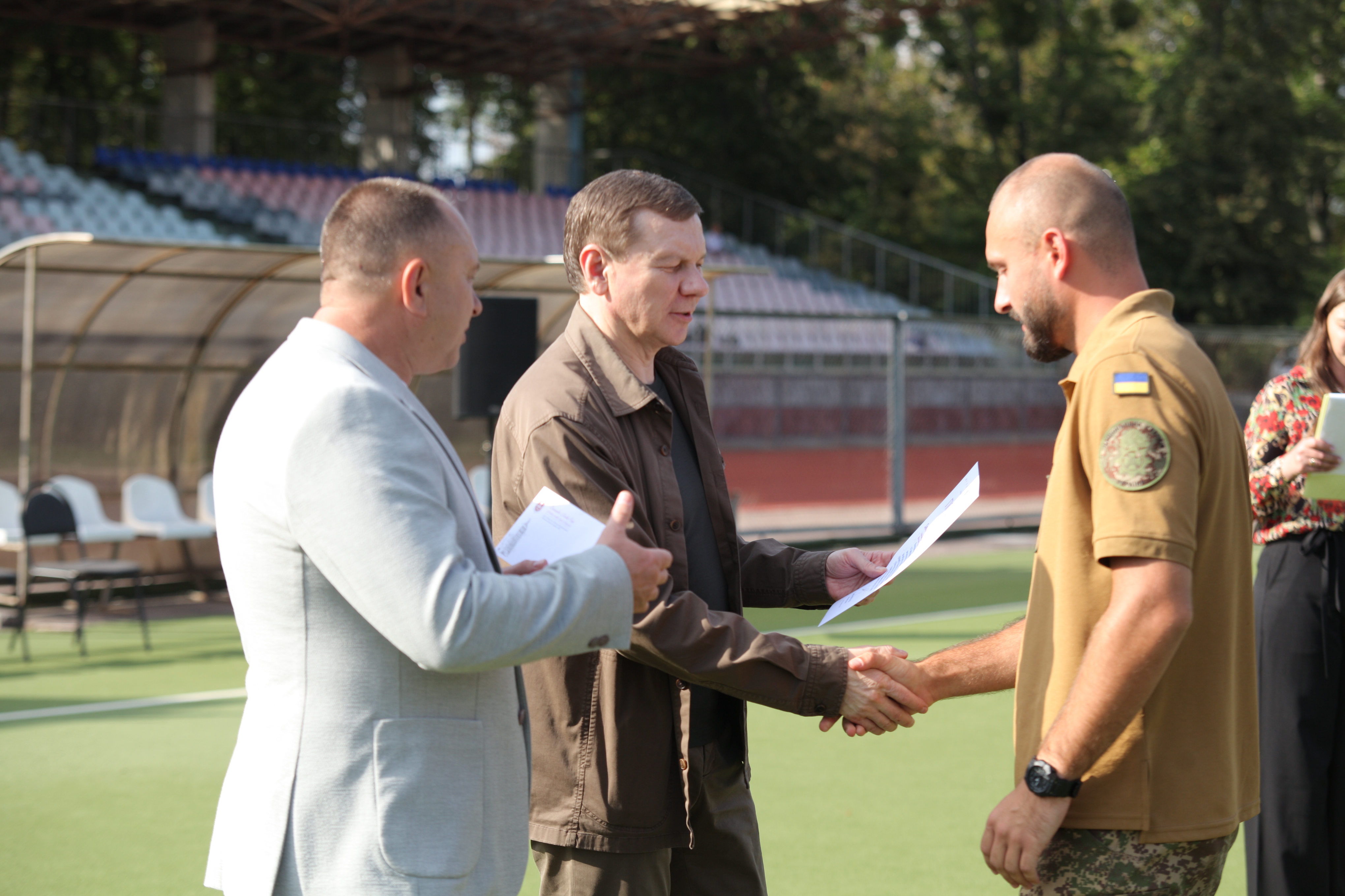 Під час першого блоку нагородили ветеранів, які продовжують демонструвати незламну жагу до життя та силу духу. Середни них – срібний призер INVICTUS Games 2025 Іван Лавренюк, переможці міжнародних змагань серед ветеранів та військовослужбовців Армен Гарибян, Ярослав Фіногенов, а також помічник начальника служби фізичної підготовки і спорту військової частини Денис Куленко.