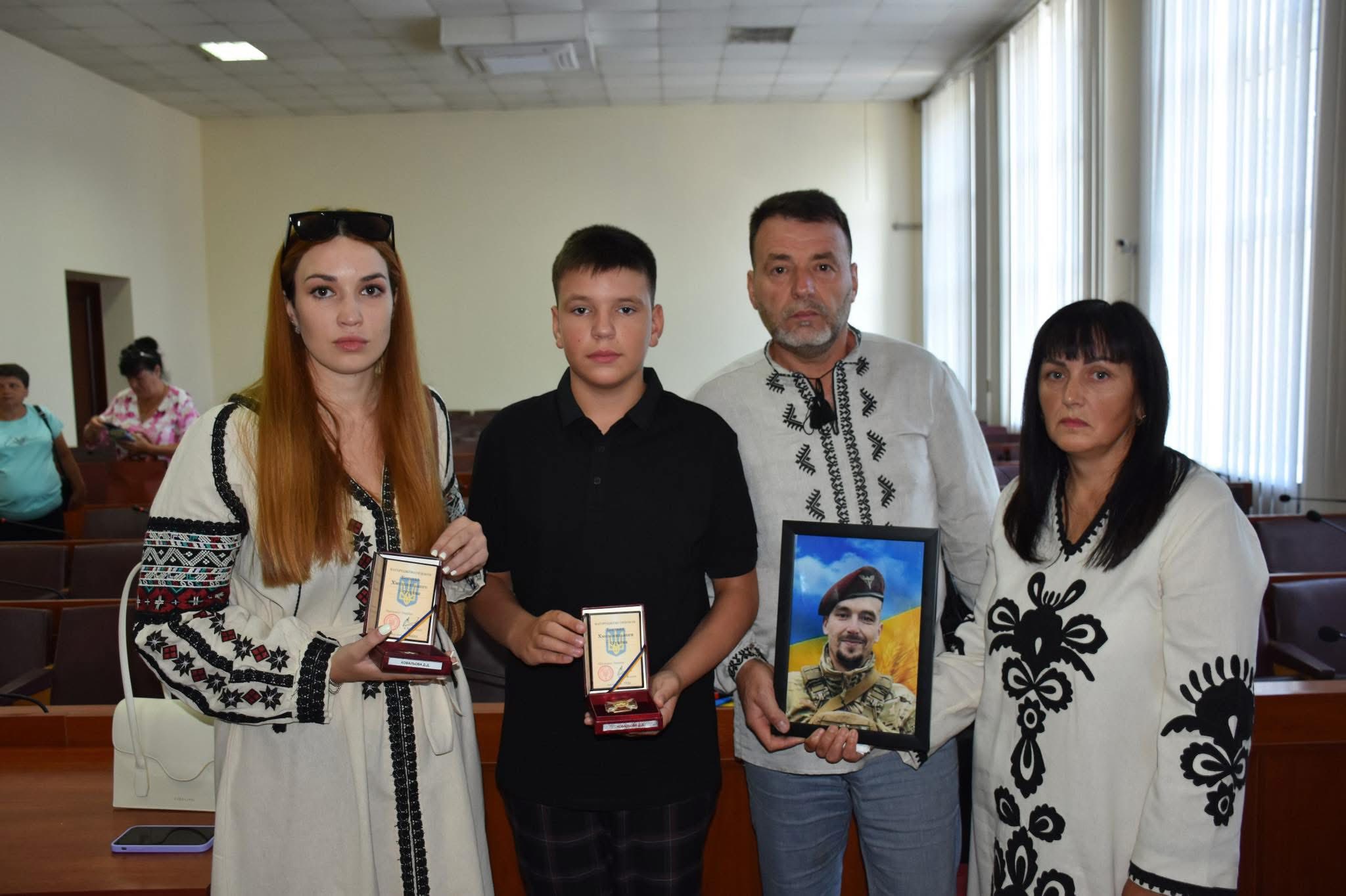 Нагороди отримали батьки оборонця Людмила Миколаївна й Денис Васильович Ковальові, його наречена Діана Бондарук та молодший брат Остап.