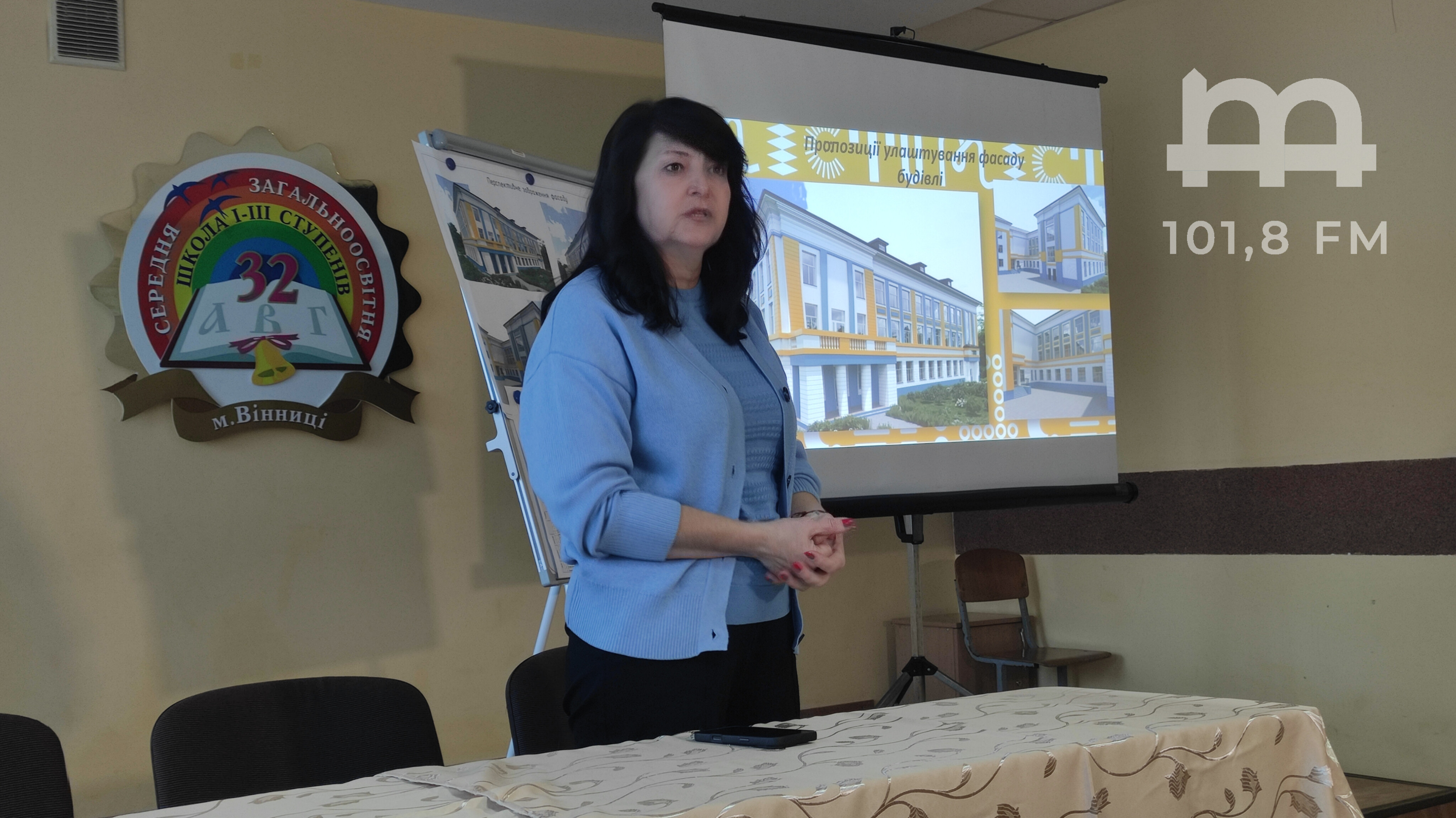 "Сьогоднішня зустріч була наслідком звернення родин загиблих випускників 32-ї школи. Вони звернулися листом до департаменту капітального будівництва щодо того, як вони бачать фасад школи. Їхнє рішення є слушним, тож було розроблено проєкт в синьо-жовтих кольорах — кольорах нашого прапора, — який оновить школу і надасть їй святкового й урочистого вигляду".
