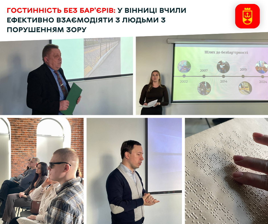 «Коли у 2019 році у Вінниці встановлювалися перші туристичні інформаційні таблички зі шрифтом Брайля і ми вирішили організувати пішохідну екскурсію для людей з порушенням зору, дуже бракувало знань і методики взаємодії з ними: як розпочати розмову, як правильно та безпечно супроводжувати незрячу чи слабозрячу людину, – сказав директор департаменту маркетингу міста та туризму Олександр Вешелені. – На жаль, за останні роки ця тема стала ще більш актуальною через війну і значну кількість травмованих, які втратили зір повністю або частково. Для Вінниці питання інклюзії є інструментом зближення людей, зміцнення соціальних зв’язків і підтримки один одного. В туристичній сфері існує цілий ланцюжок послуг починаючи від поїздки і пересування містом, закінчуючи готелем, рестораном, екскурсією чи музеєм, де взаємодія з людьми, що мають порушення зору, потребує базових навичок персоналу і розуміння потреб клієнта. Саме це і було головною метою нашого семінару».