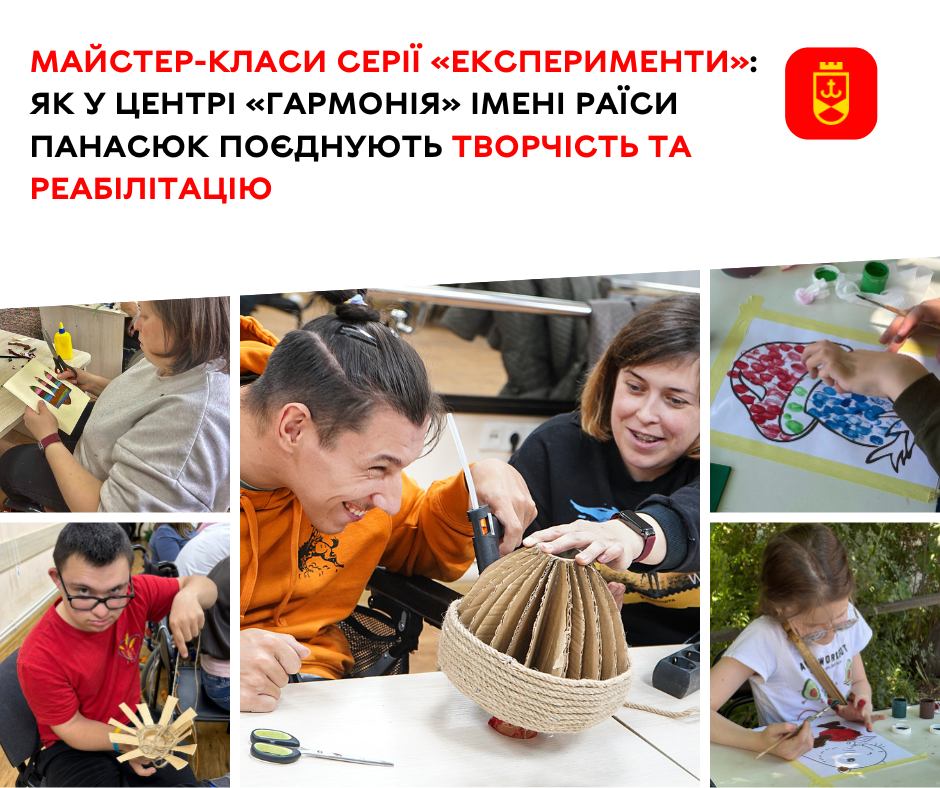 У Вінницькому центрі реабілітації «Гармонія» імені Раїси Панасюк проходять різні заняття для дітей та молоді з інвалідністю, зокрема для фізичної та психологічної реабілітації. Щотижня тривають заняття з серії майстер-класів «Експерименти», під час якого клієнти працюють з різними матеріалами, створюють цікаві речі, спілкуються, покращують свій стан через творчість.