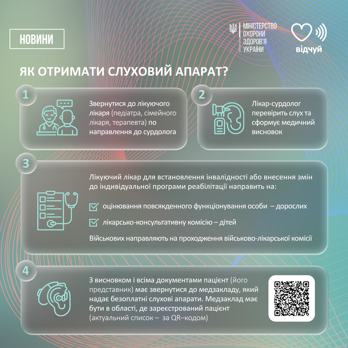 3 березня відзначається Всесвітній день слуху. У Міністерстві охорони здоров’я нагадали, що слухові апарати можуть отримати діти й дорослі з інвалідністю та військовослужбовці, які мають порушення слуху, але ще не мають статусу людини з інвалідністю.