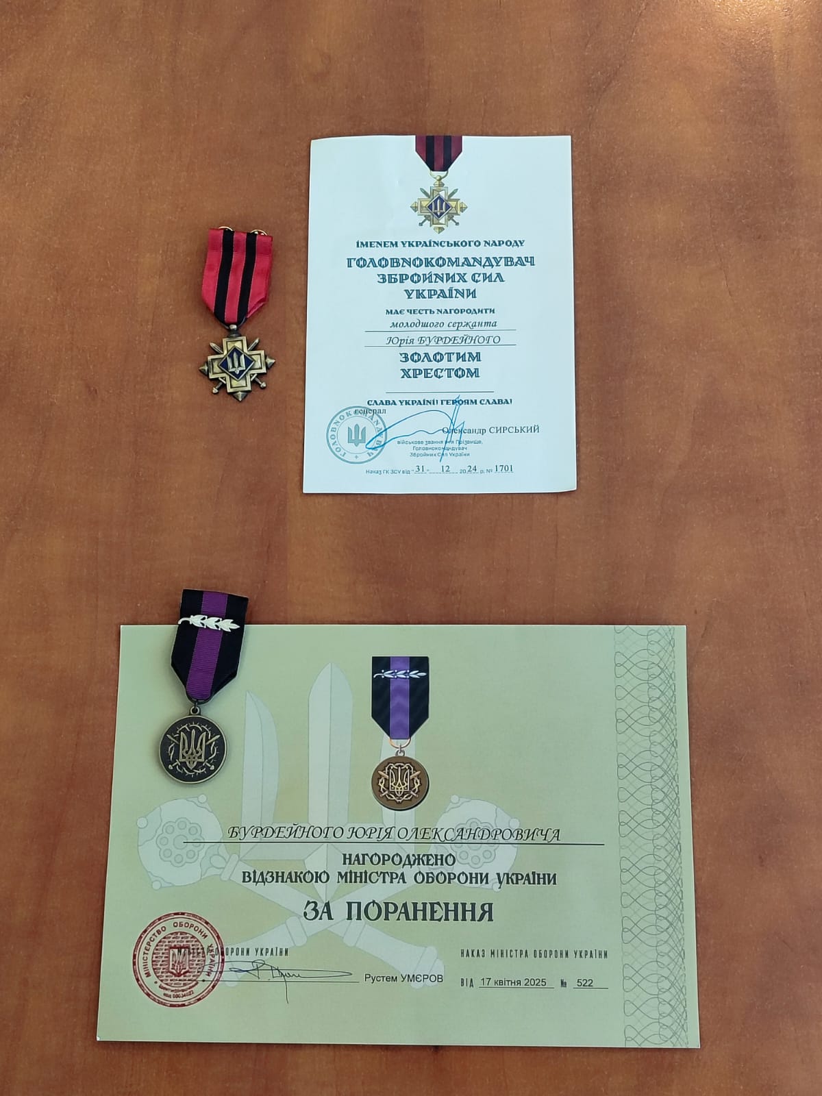 Юрію Бурдейному вручили «Золотий Хрест» та нагороду «За поранення».