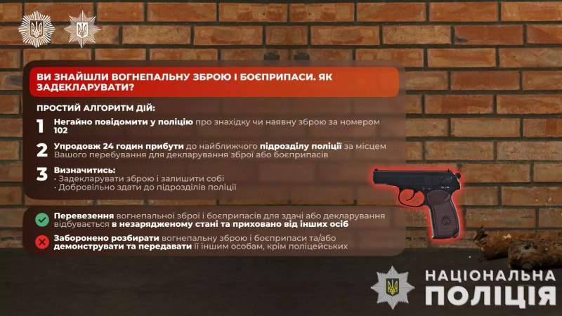 Громадяни, які добровільно повідомляють про знайдену зброю, звільняються від відповідальності, натомість отримують можливість залишити її собі на період дії воєнного стану.