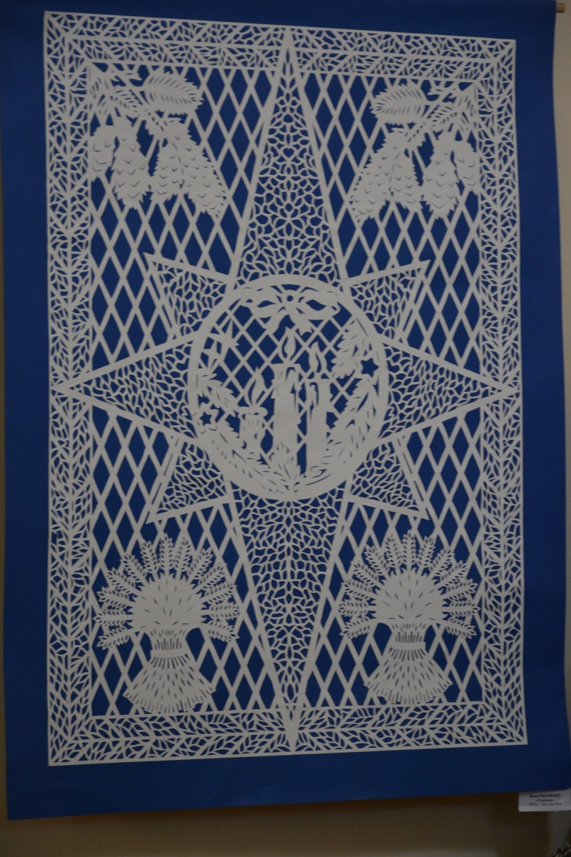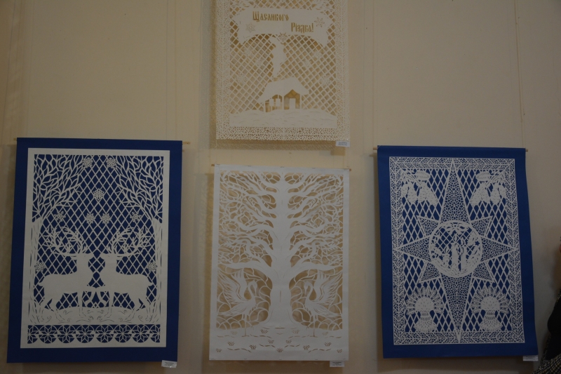 В експозиції виставки представлено понад два десятки витинанок патріотичної тематики, що вирізняються оригінальним стилем молодої майстрині і дають уявлення про складність та витонченість цього прекрасного виду народного мистецтва.