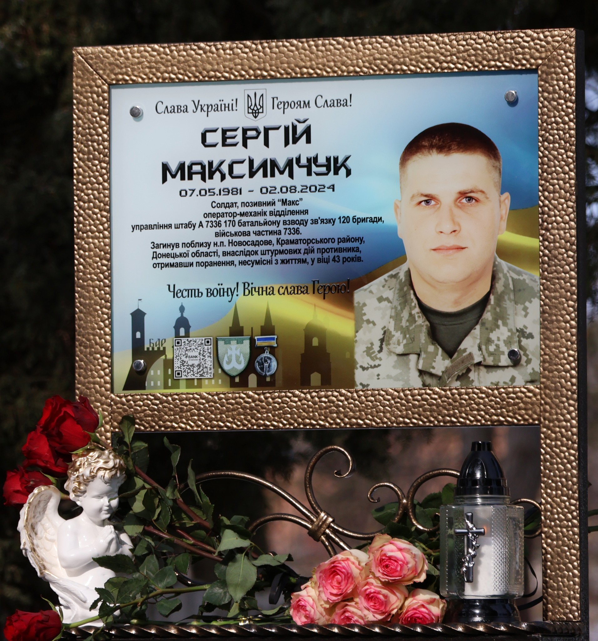 Встановили дошку полеглому Захиснику на центральній площі села Кузьминці, в якому Сергій народився.