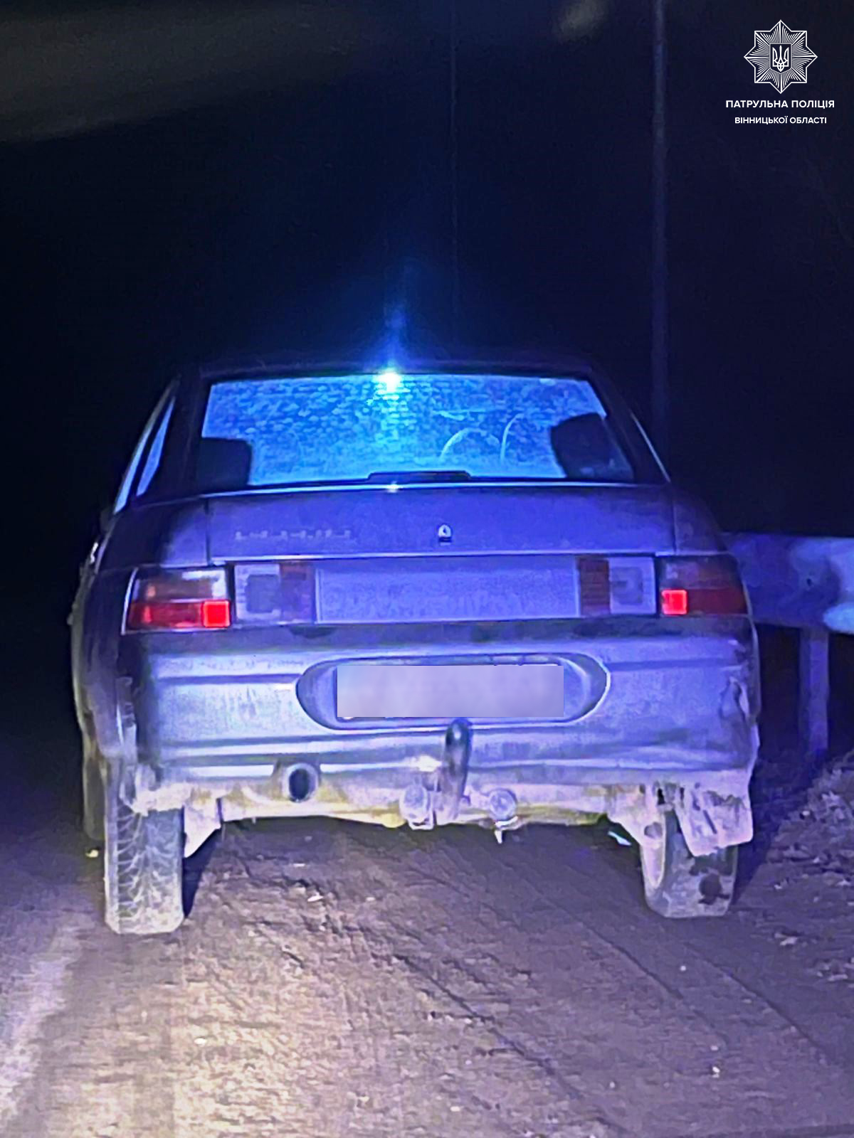 У ніч на 6 лютого, під час комендантської години, за порушення ПДР на автодорозі М-21 патрульні зупинили автомобіль ВАЗ 2110, інформують на фб-сторінці Патрульної поліції Вінницької області.