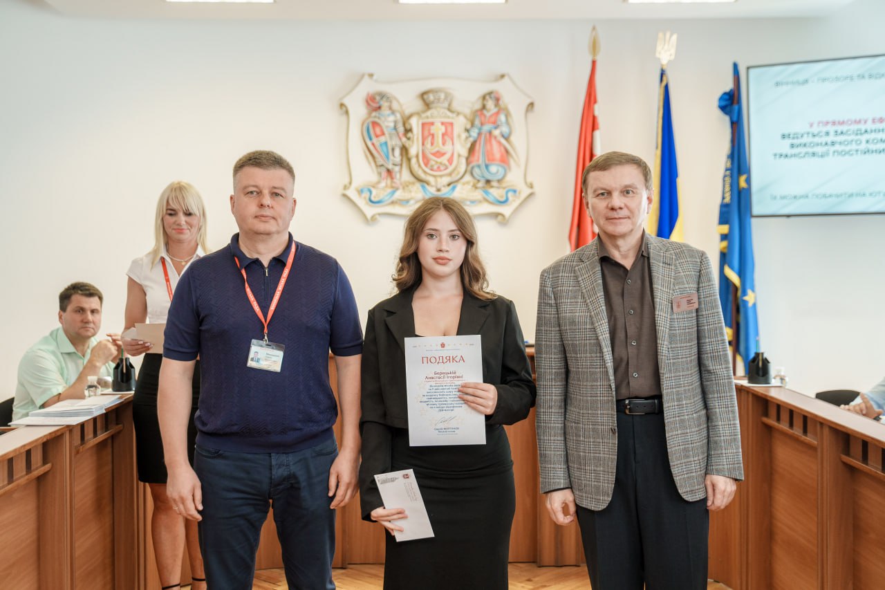 Як повідомляють на сайті Вінницької міської ради, 7 серпня на початку засідання виконавчого комітету міської ради відзначили молодих вінничан, які мають досягнення у навчанні, громадській діяльності, а також ветеранів та волонтерів. Нагородження відбулось з нагоди Дня молоді, який відзначатимуть 12 серпня. Подяки та премії вручили міський голова Сергій Моргунов та секретар міської ради Павло Яблонський.