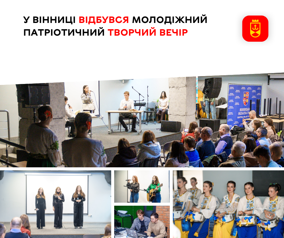 Так, 16 жовтня у молодіжному центрі «KVADRAT» за ініціативою Вінницької молодіжної ради провели творчий патріотичний вечір, йдеться на сайті міської ради.