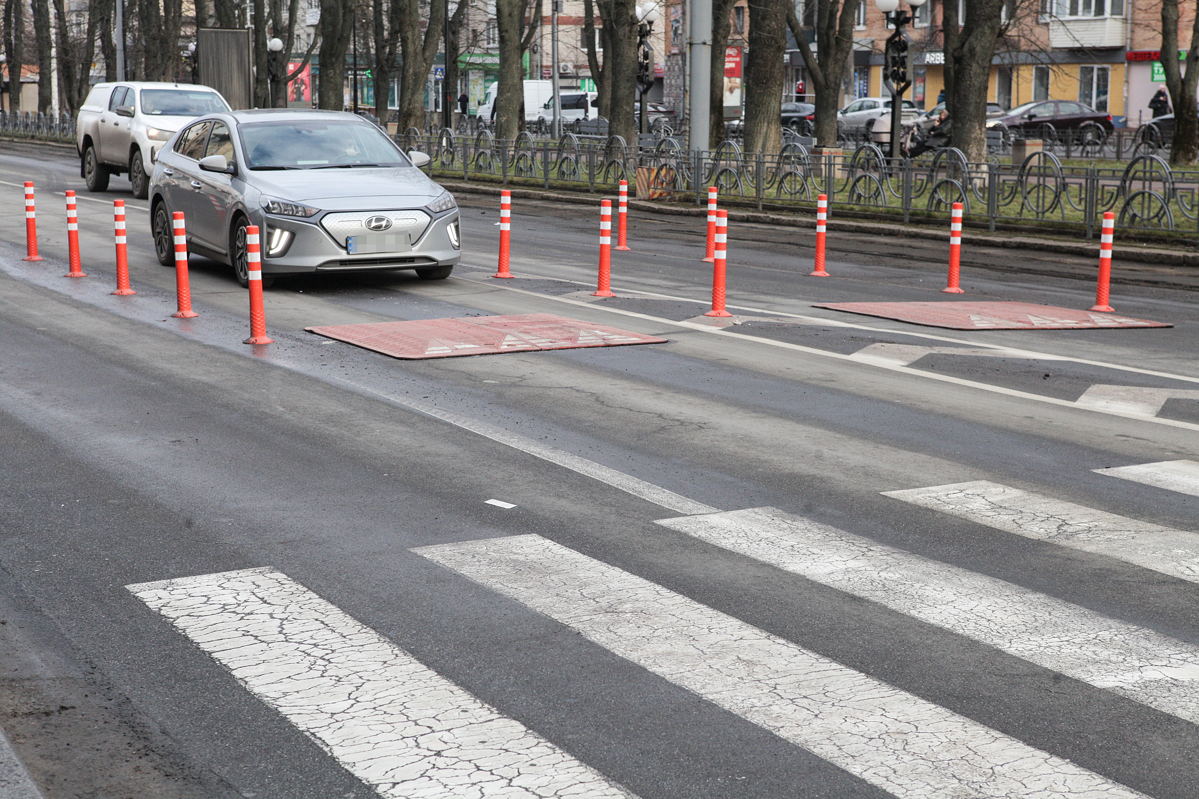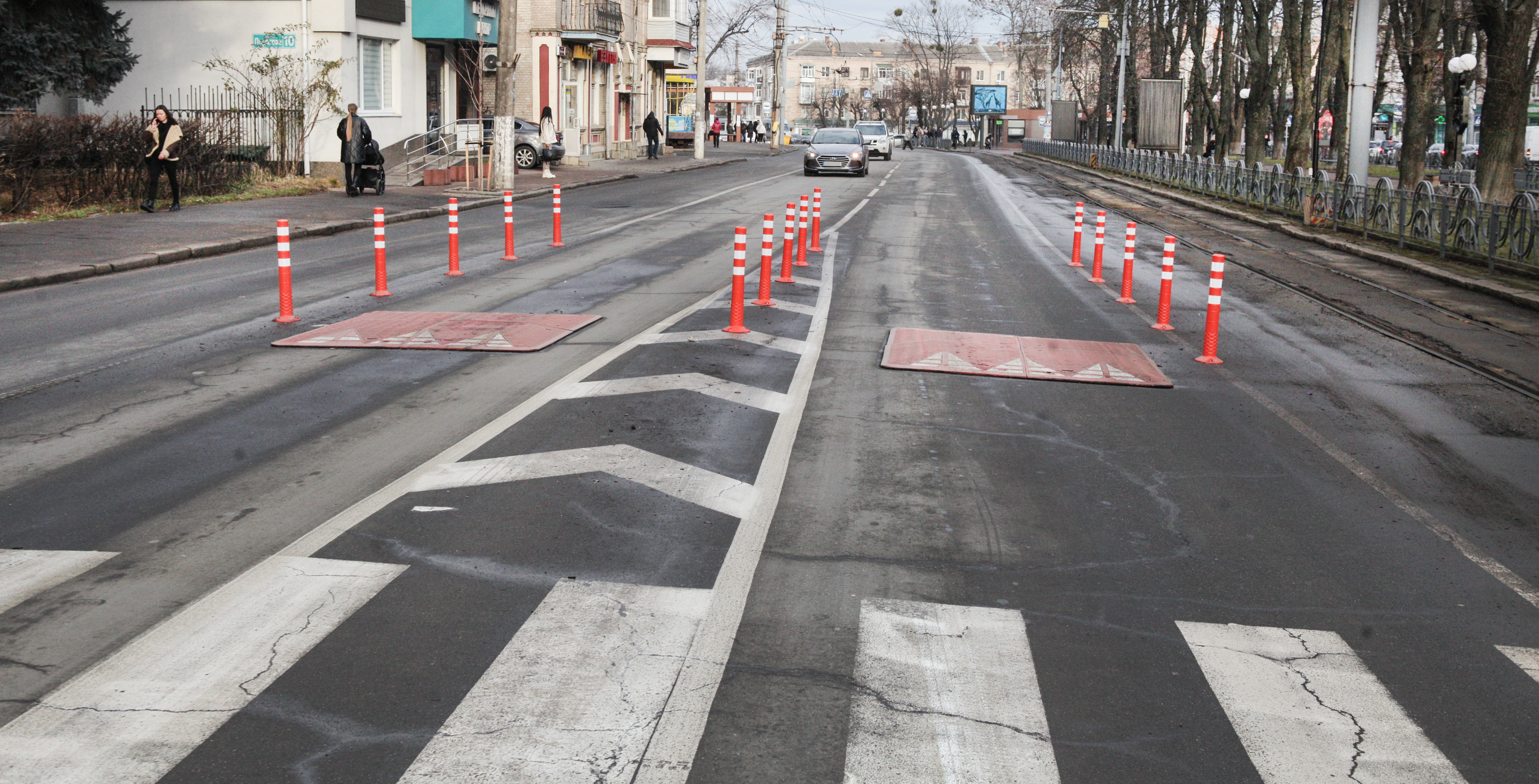 Щоб знизити швидкість транспортного потоку, а піший перехід зробити безпечнішим, працівники КП «СМЕД ОДР» встановили по Пирогова «берлінські подушки».