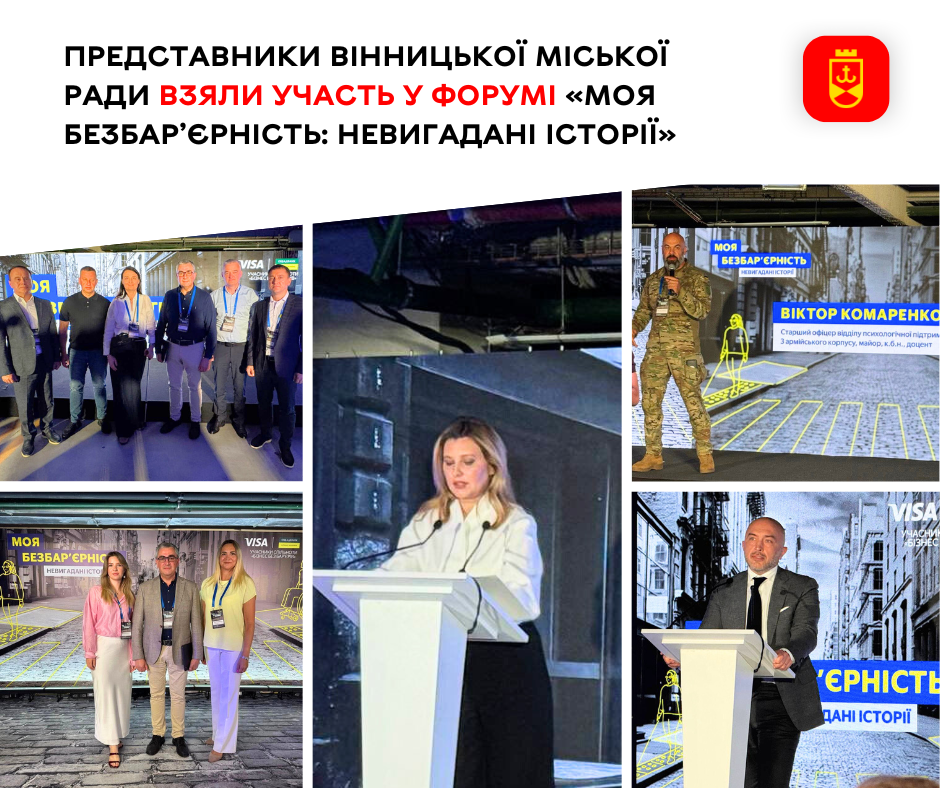 Як зазначається на сайті Вінницької міської ради, минулого тижня в Києві відбувся форум «Моя безбар’єрність: невигадані історії», де зібралися понад 300 гостей для обміну досвідом впровадження безбар’єрності та інклюзії в громадах України. Cеред учасників були й представники Вінницької міської ради.
