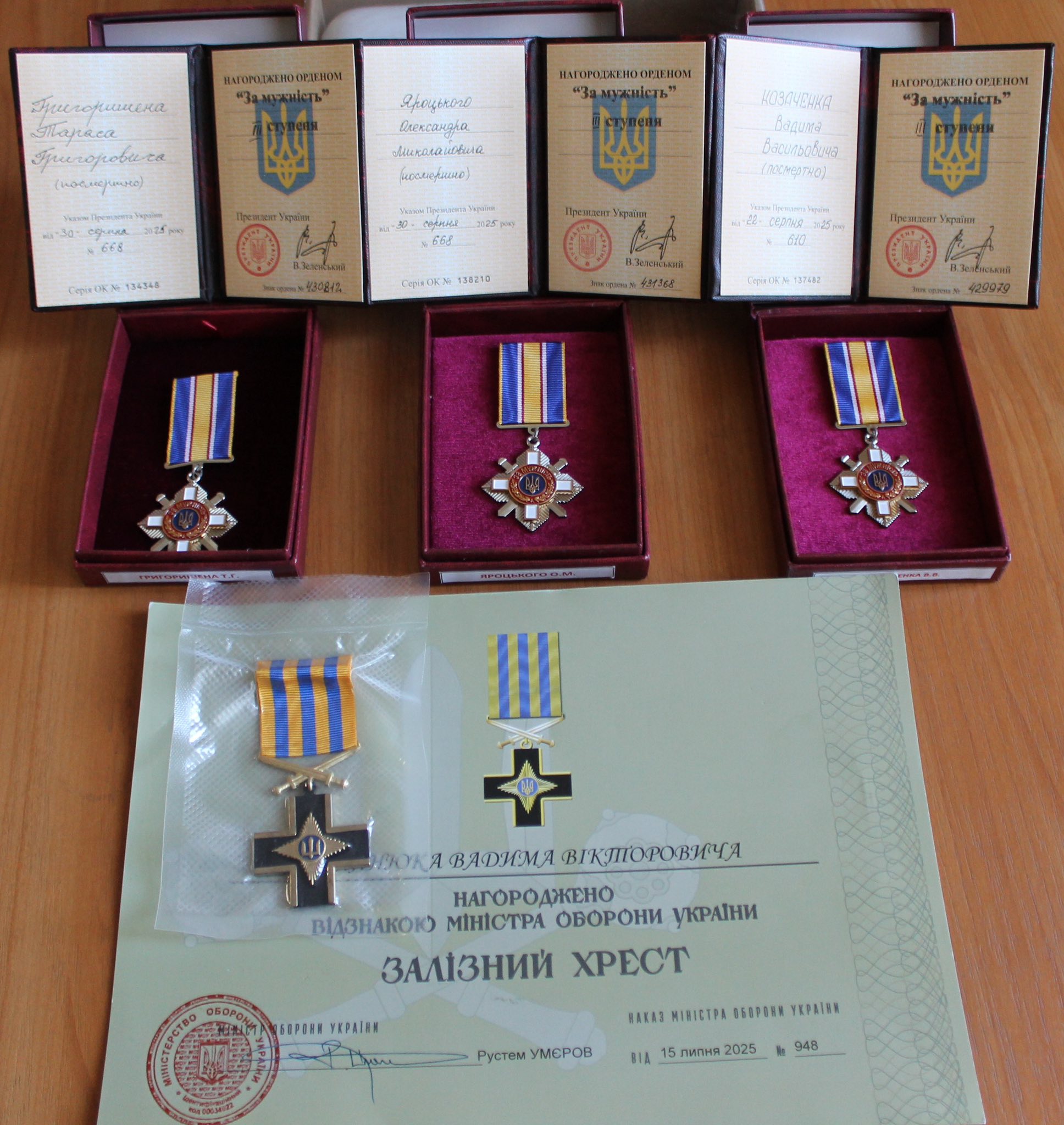 Державні нагороди вручили родинам загиблих воїнів Вадиму Козаченку, Олександру Яроцькому, Тарасу Григоришену та Вадиму Баланюку.
