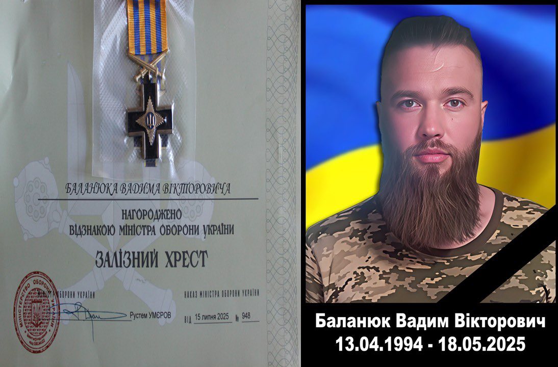 Молодший сержант Вадим Баланюк служив у складі 5 десантно-штурмової роти 2 десантно-штурмового батальйону військової частини А0281. 18 травня 2025 року, під час бойових дій у районі населеного пункту Юнаківка Сумської області, він проявив відвагу, стійкість і вірність присязі та загинув, захищаючи Україну. Наказом Міністра оборони України від 15 липня 2025 року №948 нагороджений відзнакою «Залізний хрест» (посмертно). Нагороду вручено дружині — Альоні Валеріївні.