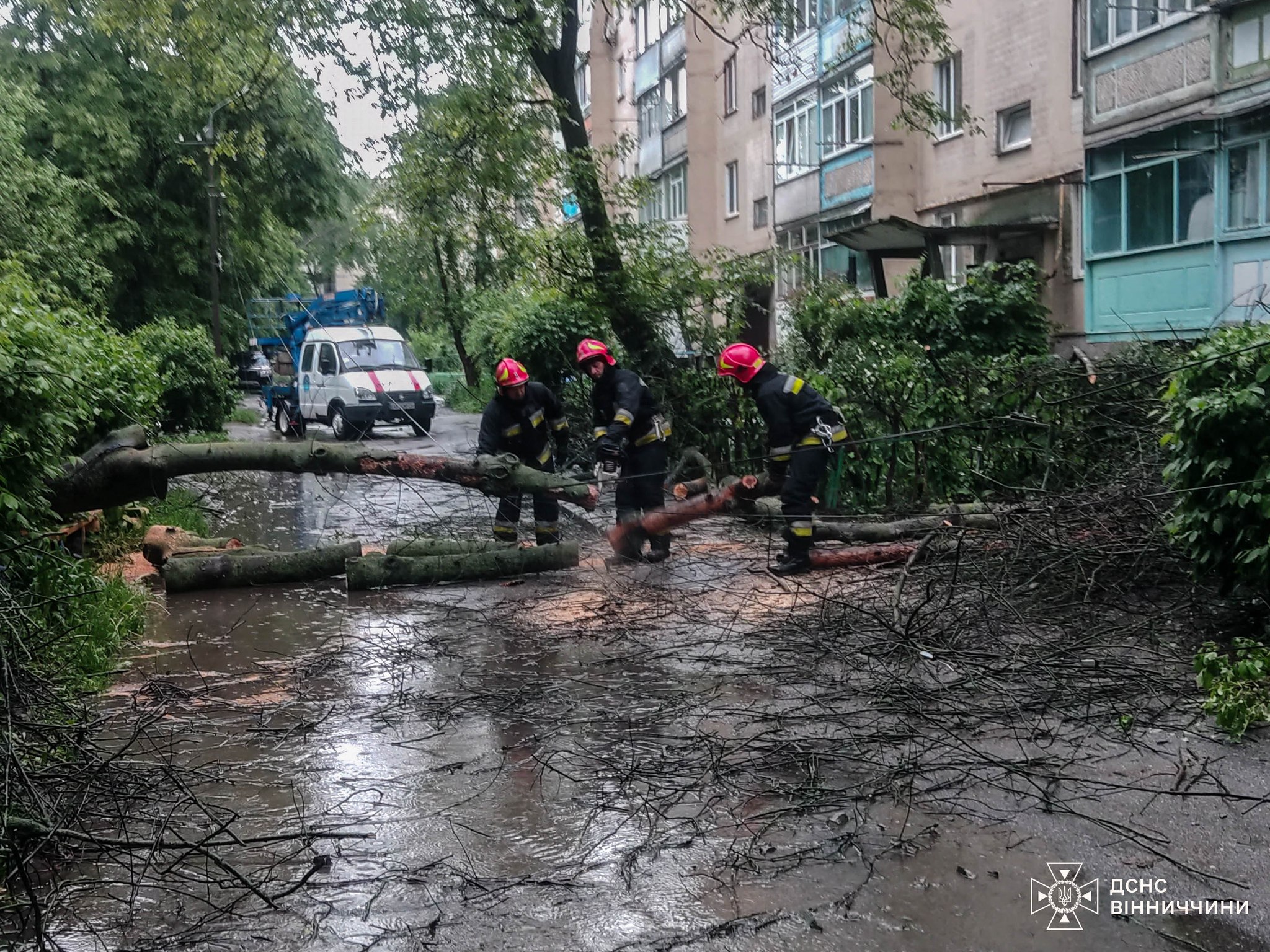 Як інформують на фб-сторінці ГУ ДСНС України у Вінницькій області, п'ять разів учора підрозділи ДСНС виїжджали на ліквідацію наслідків негоди в області. Тричі повалені дерева розкряжовували рятувальники у Вінниці — на вул. Ващука, вул. Стрілецькій та проспекті Юності, ще двічі — у с. Якушинці Вінницького району та в Тульчинській громаді.