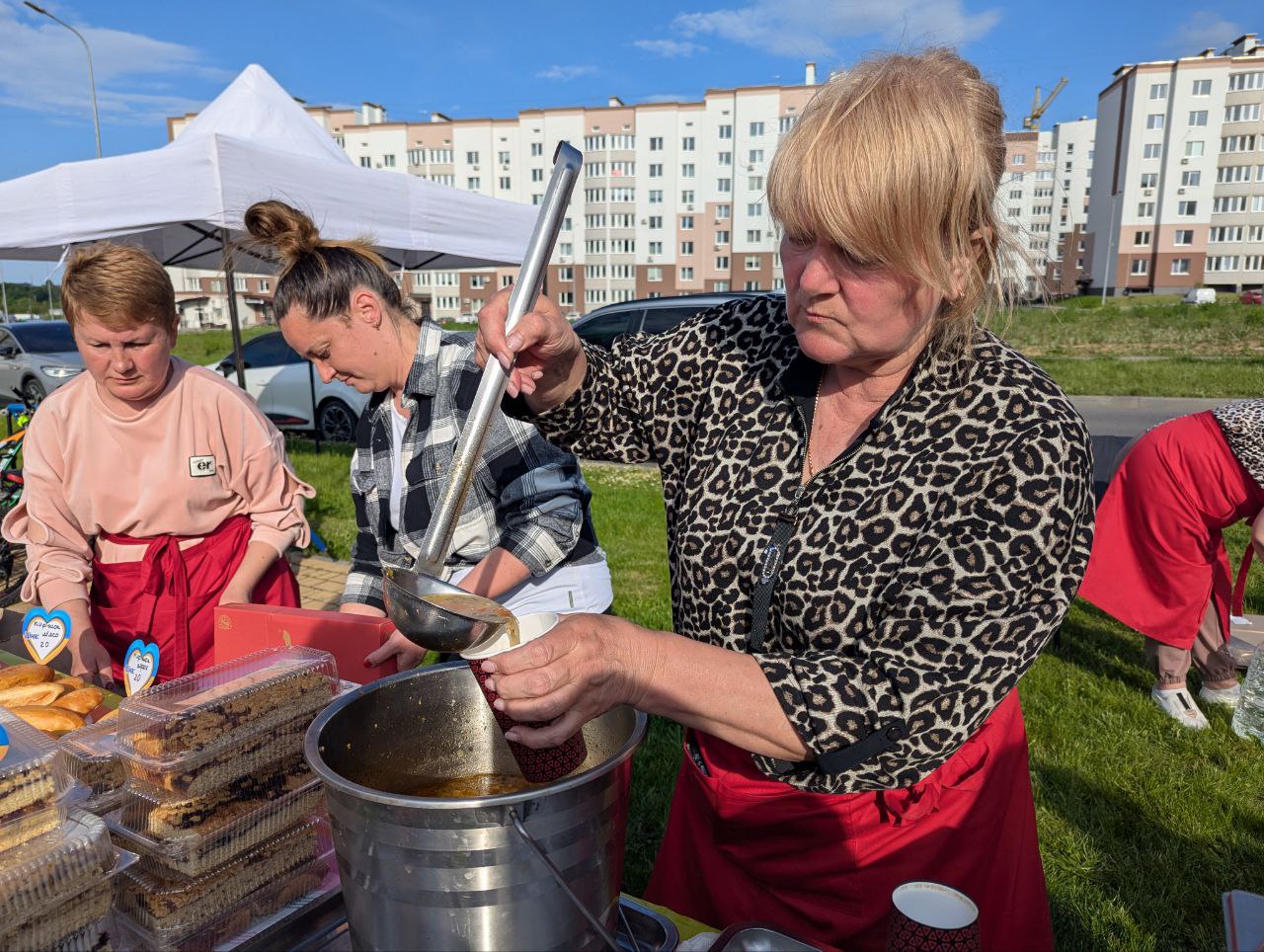 «Підходьте, скуштуйте, такої смакоти ви ще не їли, – запевняє матуся Анна Юрець, – Ми наліпили та наварили вареничків з картоплею, спекли кіш домашній, дерунів насмажили з м’ясом. Маємо важливу місію, тож долучаємося як можемо. Тому з радістю готую, з радістю продаю, і з радістю приходжу на такі події».