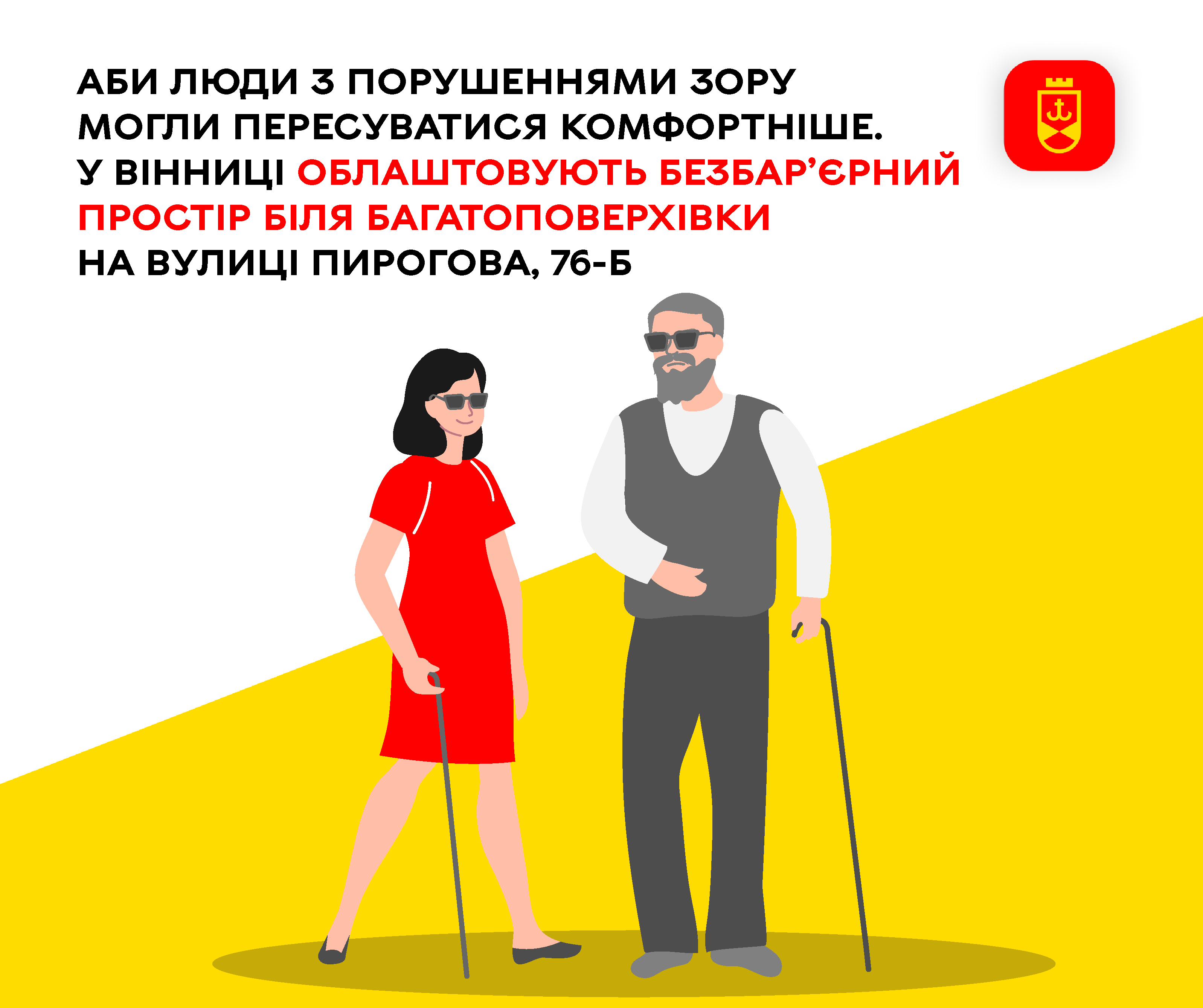 «Наразі ми реалізуємо комплексний проєкт, який передбачає облаштування понижень та попереджувальної плитки та дозволить зробити пересування мешканців з порушеннями зору більш комфортнішим. У Вінниці ще з 2006 року діє програма “Вінниця зручна для всіх”, яка була ініційована тодішнім міським головою Володимиром Гройсманом та Раїсою Панасюк. Сьогодні ми продовжуємо планомірно рухатися в напрямку доступності нашого житлового сектору», – розповідає в. о. директора департаменту житлового господарства міськради Олександр Ситник.