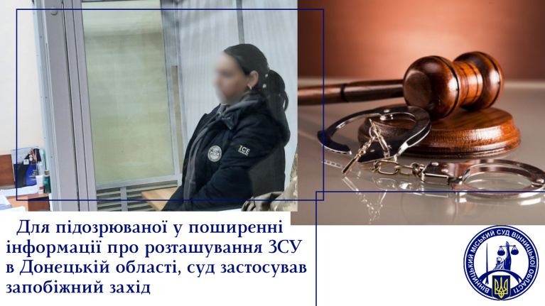 Жінку підозрюють у скоєнні кримінального правопорушення, передбаченого ч. 3 ст. 114-2  КК України (поширення інформації про направлення, переміщення зброї, озброєння та бойових припасів в Україну).