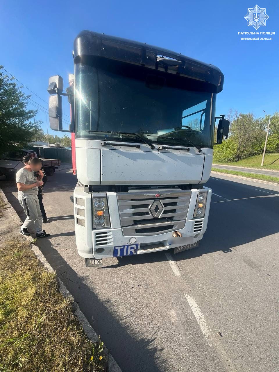 "На 34-річного водія вантажівки Renault Magnum патрульні склали протокол за ст. 130 (Керування транспортним засобом у стані сп'яніння) та винесли постанову за ч. 2 ст. 126 (Керування транспортним засобом особою, яка не має такого права) КУпАП", – інформують патрульні.