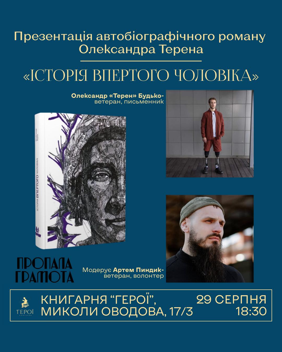 "Це більше, ніж просто розмова з автором, це можливість почути про те, чим може обернутись війна, про те, чого можна досягнути, якщо вперто торувати свій шлях, про те, що справді має вагу — людей і стосунки між ними. Приходьте 29 серпня о 18:30 в найзатишніший літературний простір міста, щоб побачити, якими бувають вперті чоловіки. І як в українському серці народжується світло — навіть у найтемніший час", — йдеться в анонсі.