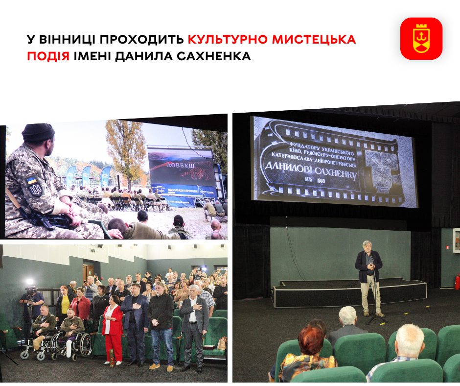 Як повідомляють на сайті Вінницької міської ради, 17 вересня у вінницькому муніципальному кінотеатрі «Родина» розпочався XVI Всеукраїнський фестиваль екранних мистецтв «Дніпро-Cinema» імені Данила Сахненка. Це майданчик для зустрічі режисерів, сценаристів, акторів і глядачів з різних куточків країни. Цьогорічна програма обіцяє бути особливою: від прем’єрних показів і творчих зустрічей до дискусій про роль сучасного українського кіно у час війни. Подія проходить під патронатом Національної спілки кінематографістів України, за підтримки Держкіно України, сприяння ТОВ «Спільна Перемога Продакшн» та Вінницької міської ради.