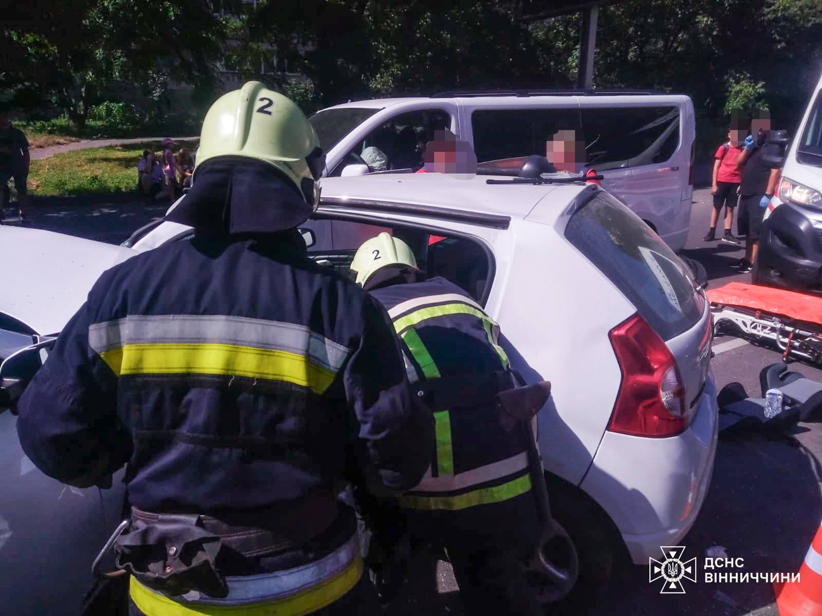 Вчора, 31 серпня, у Вінниці, на вул. Замостянській, рятувальники ліквідували наслідки дорожньо-транспортної пригоди за участю мікроавтобуса «Опель» та двох легковиків «КІА» та «Дачіа», йдеться на фб-сторінці ГУ ДСНС України у Вінницькій області.