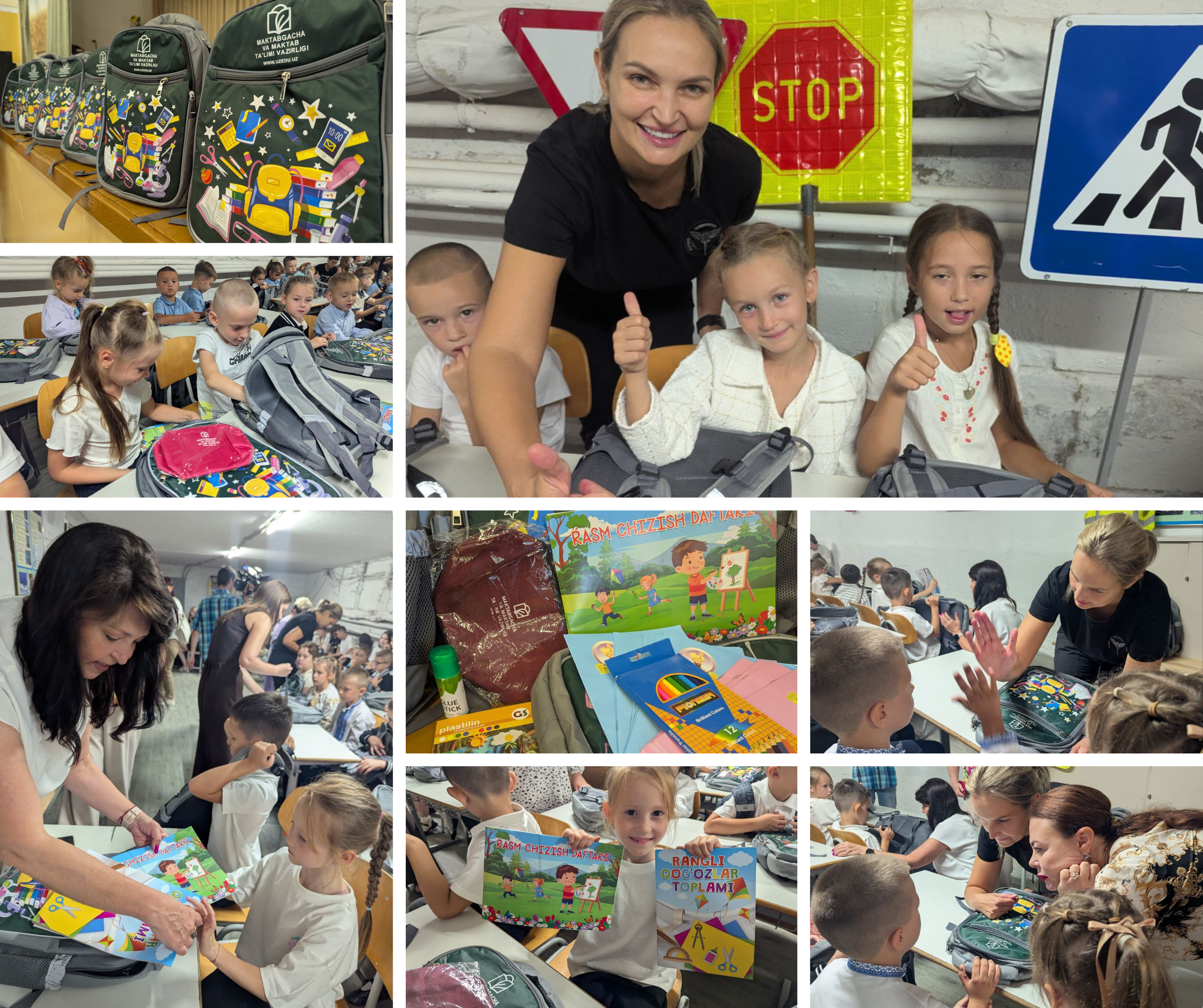 У наплічниках все необхідне для школи: зошити, ручки, олівці, пенали, альбоми для малювання, кольоровий папір, фарби. Юлія Павлюк зазначає – хоч в Україні триває війна, важливо, щоб у середині дитинства залишалося місце для радості, підтримки та відчуття: поруч є дорослі, які завжди готові допомогти.