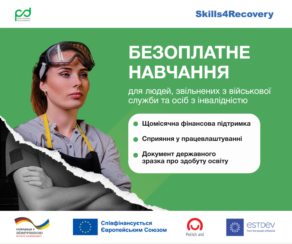 Проєкт «Навички для інклюзивності: навчання на робочому місці для активізації вразливих груп» реалізується за фінансової підтримки Європейського Союзу, Німеччини, Польщі та Естонії в межах Мультидонорської ініціативи Skills4Recovery, яку втілюють Deutsche Gesellschaft für Internationale Zusammenarbeit (GIZ) GmbH та Solidarity Fund PL (SFPL).