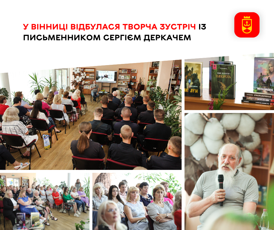 Як повідомляють на сайті Вінницької міської ради, у час, коли війна щодня випробовує Україну на міцність, особливо важливо чути правду з перших вуст. Саме таке слово несе у собі силу – воно зберігає пам’ять, надихає, об’єднує. Задля цього заклад культури «Вінницька міська централізована бібліотечна система» систематично проводить заходи з письменниками, які пройшли фронтовими дорогами. І вчора, 7 серпня у Центральній міській бібліотеці імені І. Бевза відбулася тепла та змістовна зустріч з українським письменником Сергієм Деркачем – автором, який у своїй творчості поєднує реалізм та фентезі, але передусім є літописцем сучасної війни.