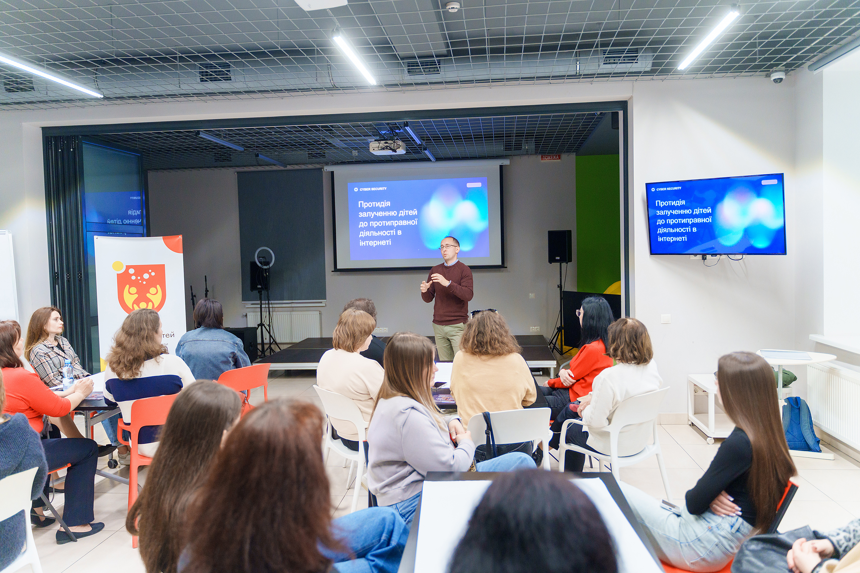 Воркшоп зібрав близько 30 слухачів – педагогів та психологів. Залучаючи практичні інструменти та роботу у групах, спікер поділився своїми знаннями та допоміг учасникам опанувати навички медіаграмотності та безпеки в інтернеті.