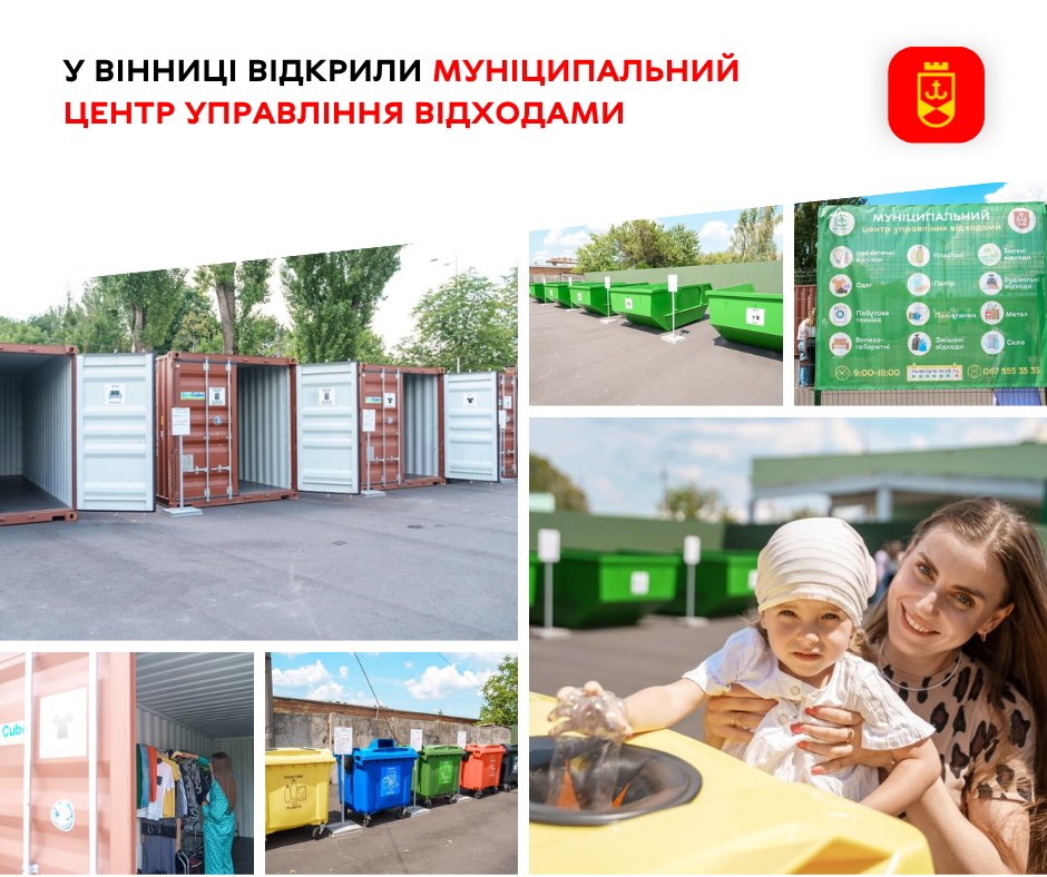 Як повідомляють на сайті Вінницької міської ради, у Вінниці розпочав роботу перший в громаді Муніципальний центр управління відходами (МЦУВ). Його облаштували на території Комунального унітарного підприємства “Ековін”, що на Сабарівському шосе, 7. Тут можна залишити або підібрати собі вживаний, але придатний для подальшого використання одяг, меблі, побутову техніку, дитячі іграшки, а також здати протерміновані медичні препарати, не пошкоджені термометри, люмінесцентні лампи, будівельне сміття, відходи рослинного походження, скло, пластик, папір тощо.
