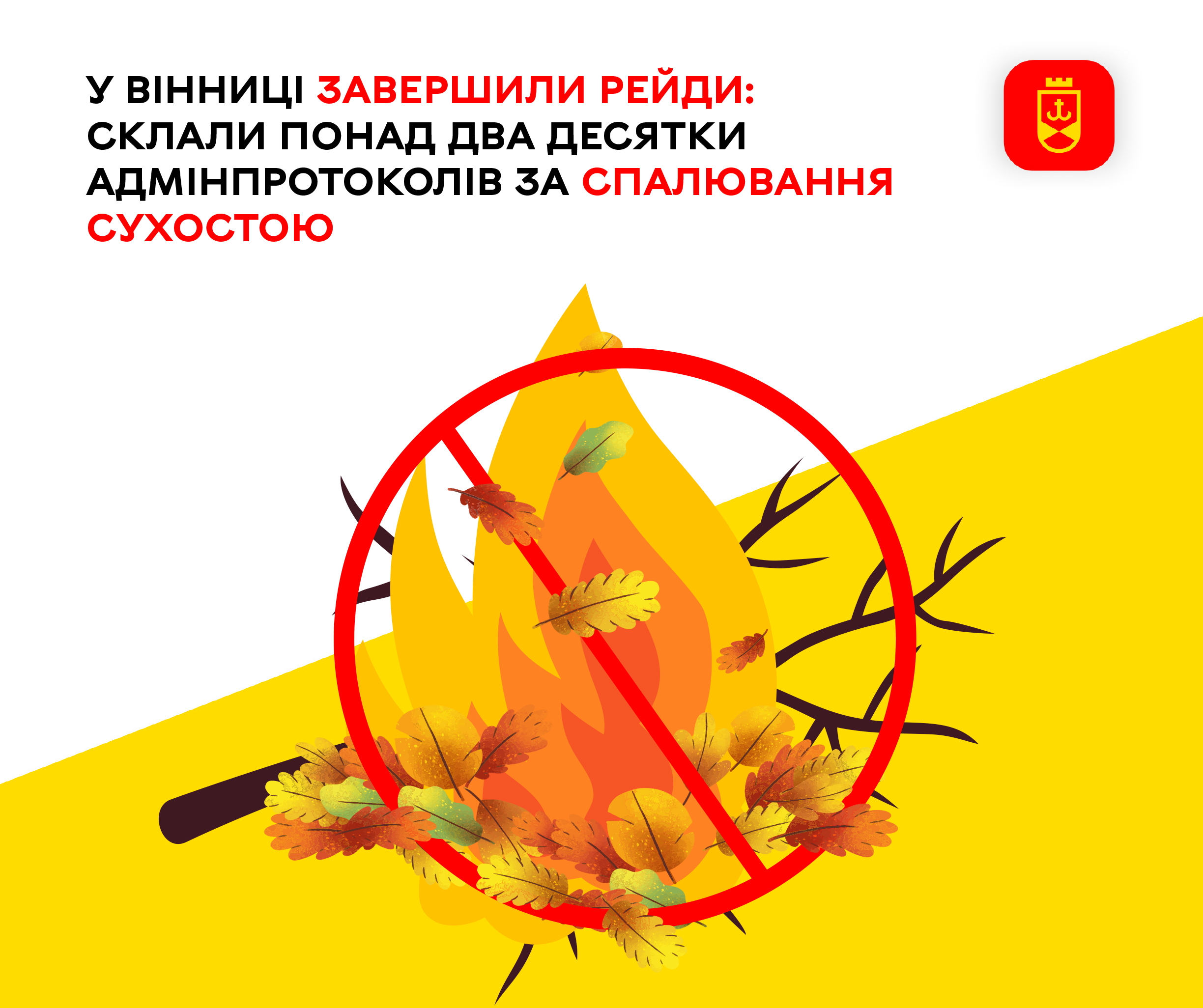 Як зазначається на сайті Вінницької міської ради, протягом двох місяців у громаді працівники комунального підприємства «Муніципальна варта» проводили рейди, пов’язані зі спалюванням відходів сухої рослинності. Для цього сформували вісім робочих груп, які щоденно працювали в різних районах міста та на приєднаних територіях громади. Загалом протоколи про адміністративне правопорушення в цьому сезоні склали на 26 громадян.
