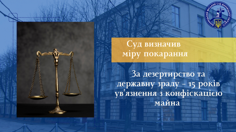 Як повідомляють на сайті Вінницького міського суду, днями установа ухвалила вирок військовослужбовцю, якого звинувачували у дезертирстві та державній зраді.