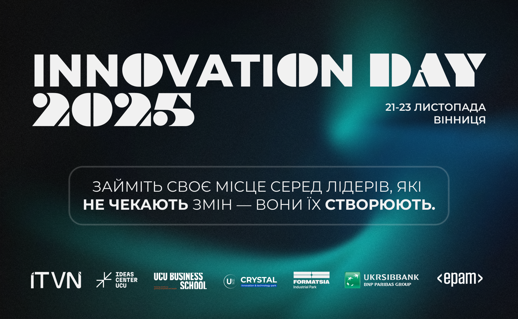 "INNOVATION DAY 2025 — це подія, що створює нові зв’язки між бізнесом, технологіями й людьми, які не бояться мислити ширше. Приєднуйтесь — і станьте частиною української інноваційної історії. Реєстрація на подію - https://www.it-vn.org.ua/i-day2025", — закликають організатори.