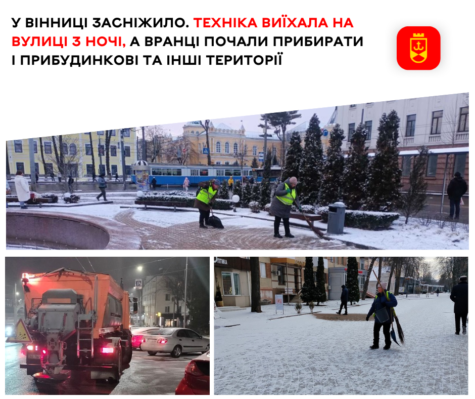 “Спецтехніка виїхала на дороги міста ще з першої ночі. Щоб на проїжджих частинах не було слизько, вони оброблялись протиожеледною сумішшю, на тротуарах - працювала малогабаритна снігоочисна техніка. До цих робіт на вулицях громади долучили загалом 34 одиниці техніки. Також на прибирання вулиць вийшли 180 працівників дорожніх служб”, - розповідає начальник відділу утримання об'єктів благоустрою департаменту комунального господарства та благоустрою Вінницької міської ради Вячеслав Хілінський.