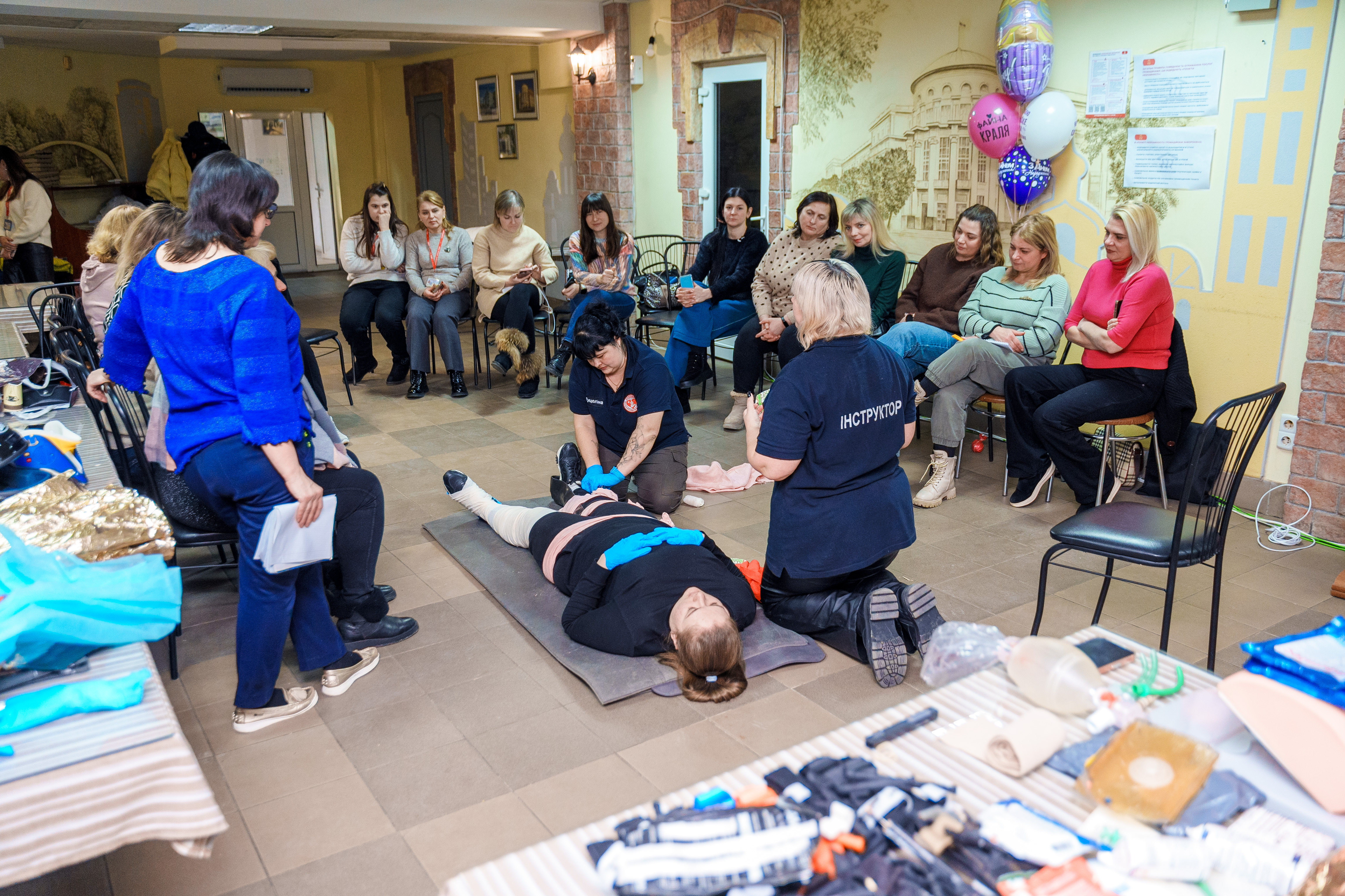 Захід провели інструктори з Агенції екстреної медичної допомоги. Якщо в перший день навчання зосередились на роботі з такими станами як серцеві напади та втрата свідомості, то під час другого дня інтенсиву учасники відпрацьовували навички надання допомоги при травмах різного ступеня важкості.