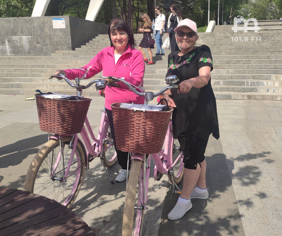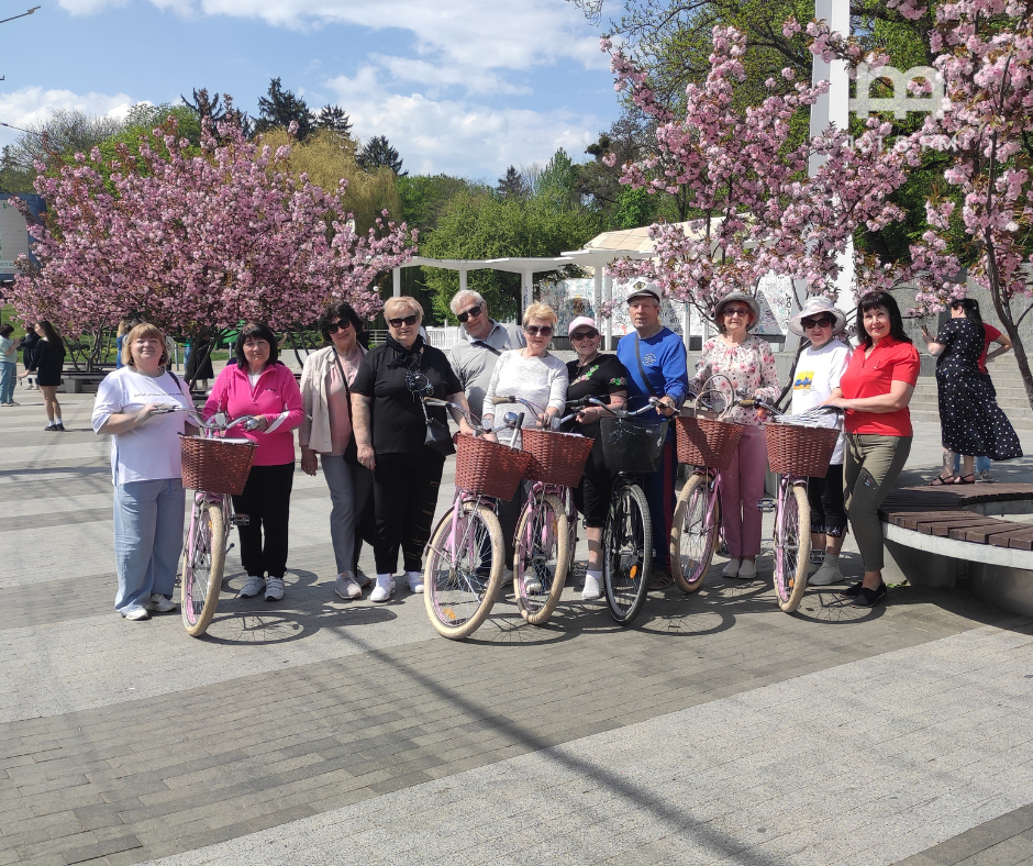 Бабусі з дідусями на муніципальних двоколісних влаштували велопрогулянку в Центральному парку ім. М. Леонтовича.