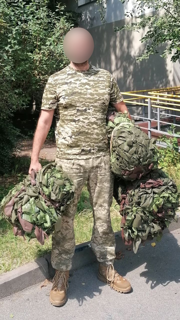 Військовослужбовцям 120 окремої бригади Сил територіальної оборони ЗСУ передали маскувальні сітки, сплетені підопічними Вінницького міського територіального центру соціального обслуговування.